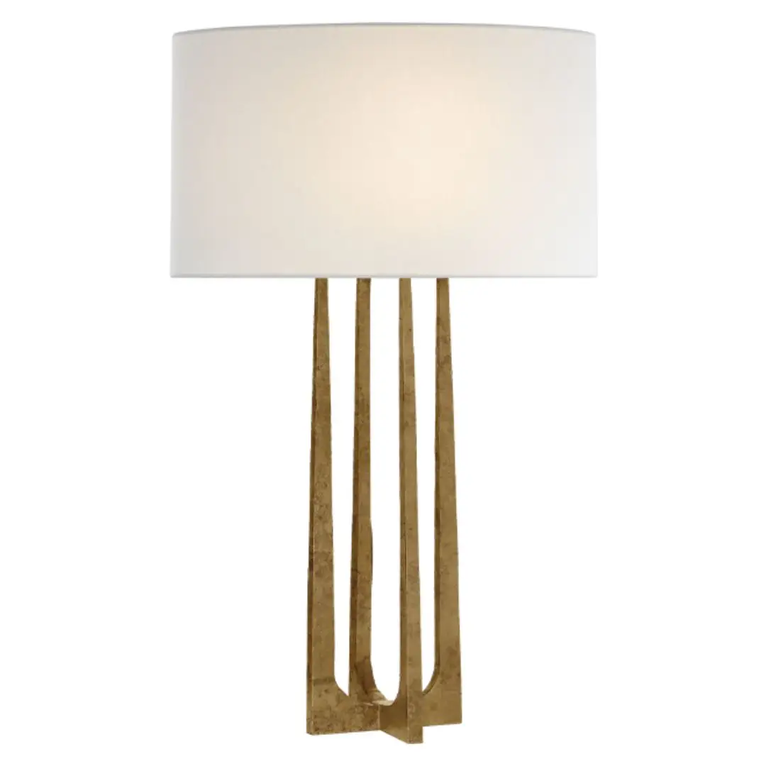 Elegant white and gold table lamp with cylindrical baseIvory lamp base with rough textured front