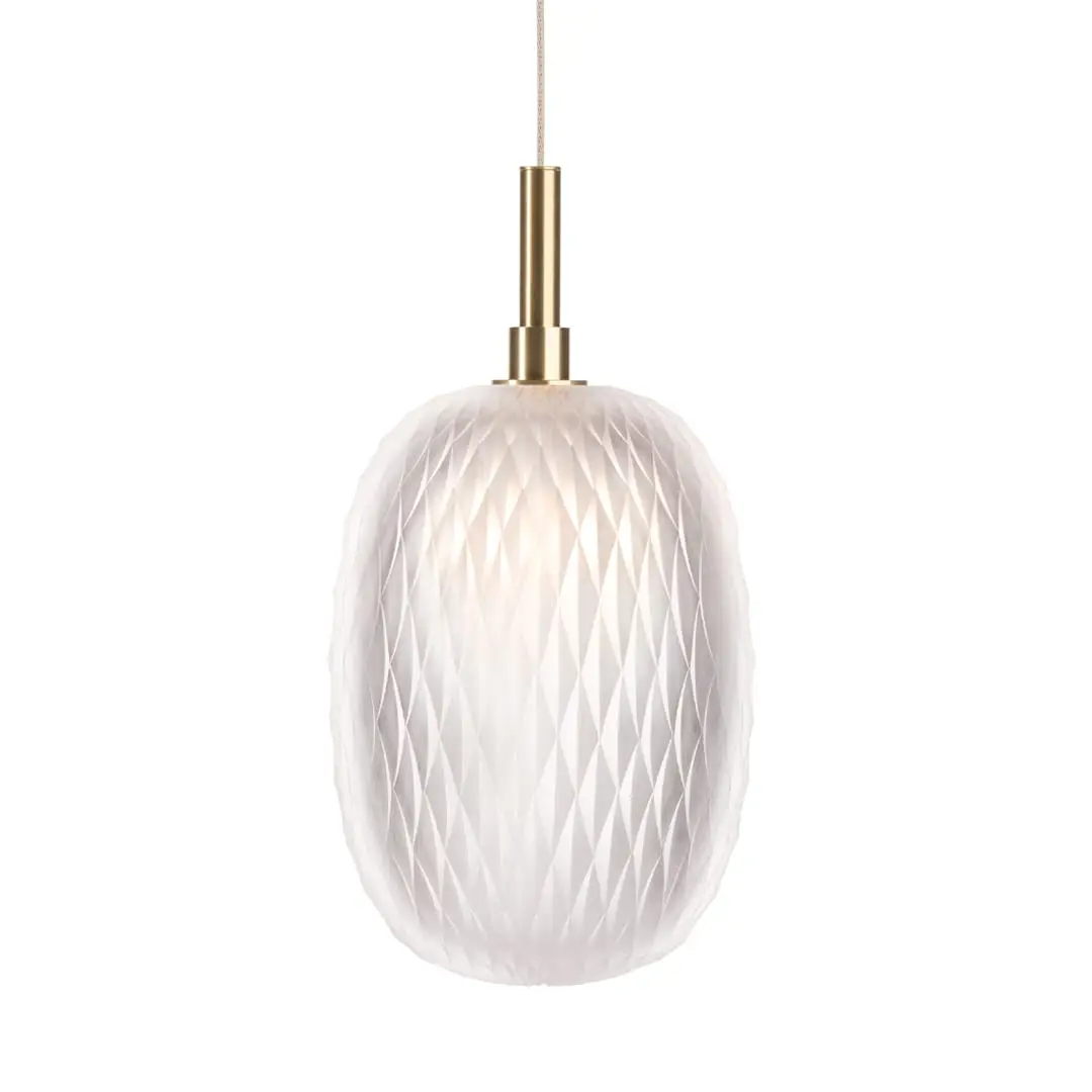 Modern hanging pendant light with frosted glassMinimalist white and gold pendant light