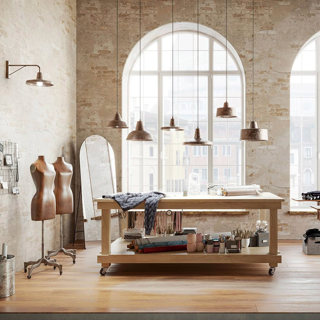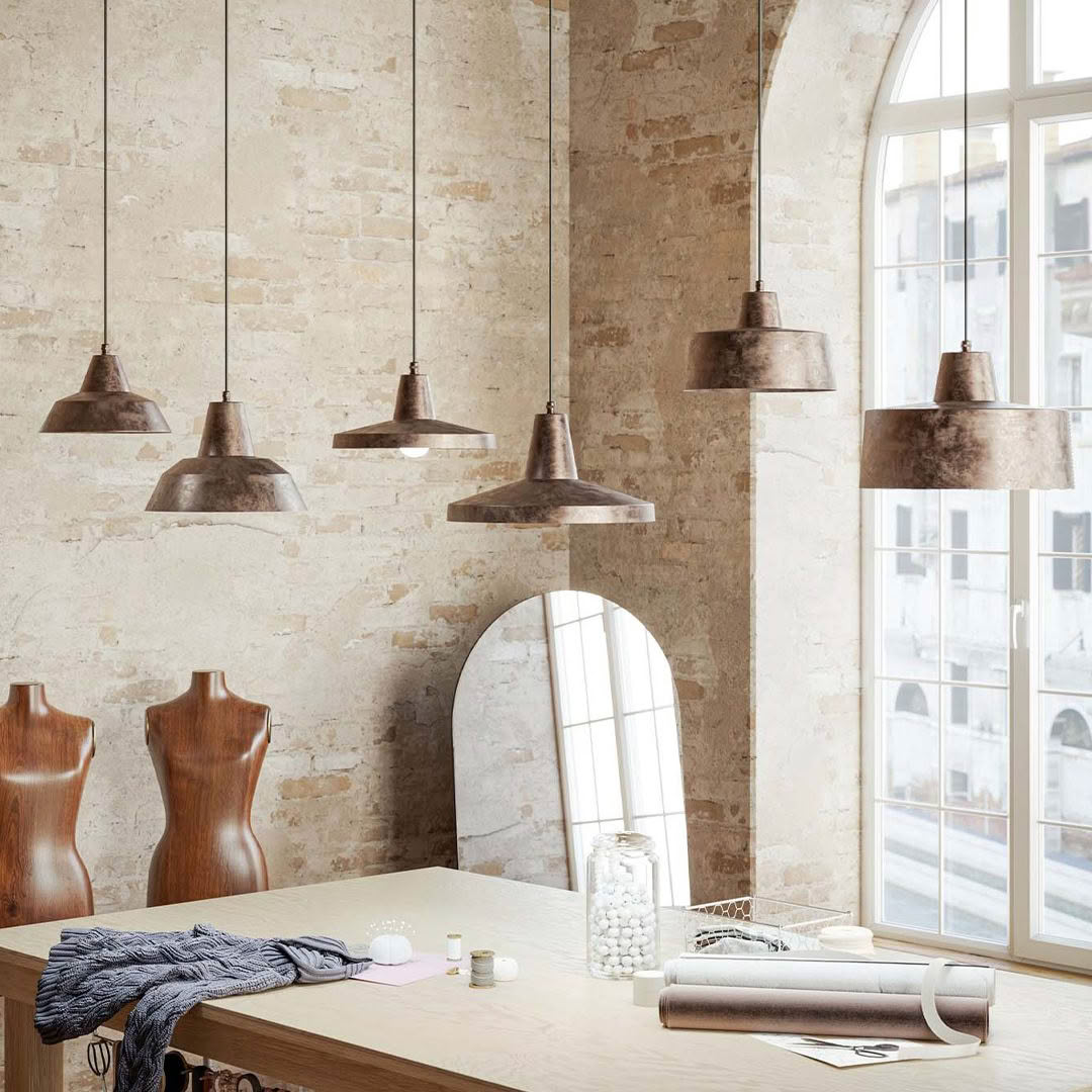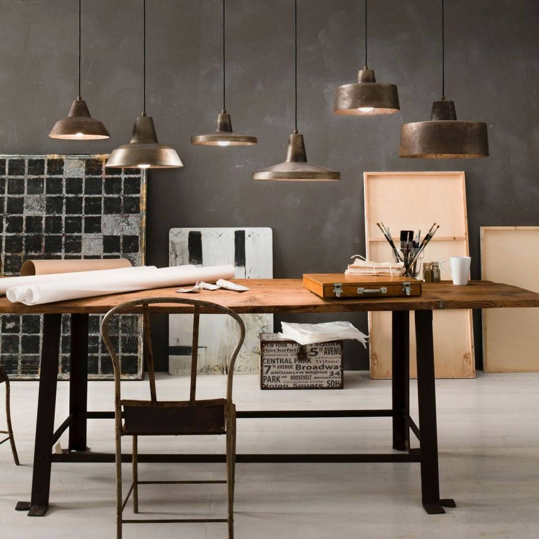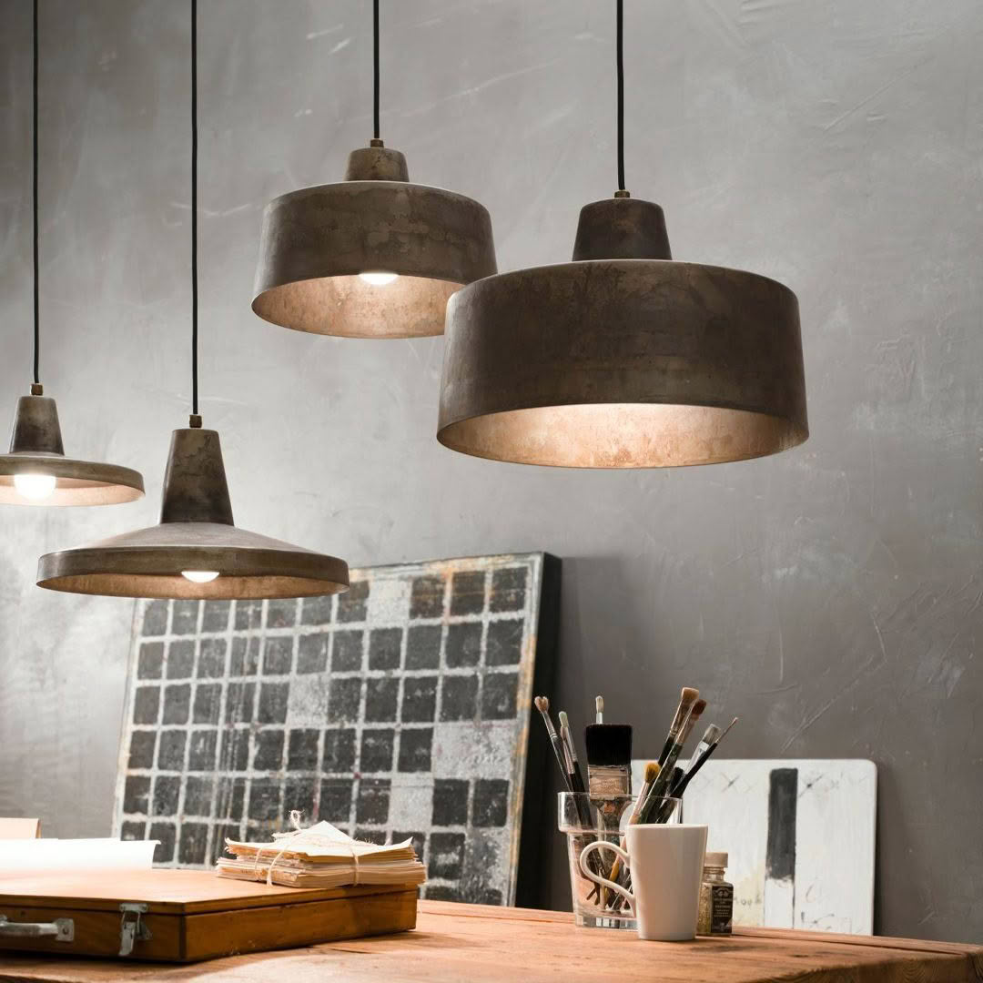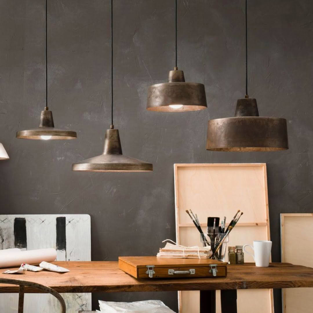 The Italian lamps in the Officina collection combine the rough texture of iron with refined essential lines. The style is typically industrial for pendant lamps and indoor wall lamps that create the right atmosphere wherever they are positioned, whether in a home environment or a collective space.