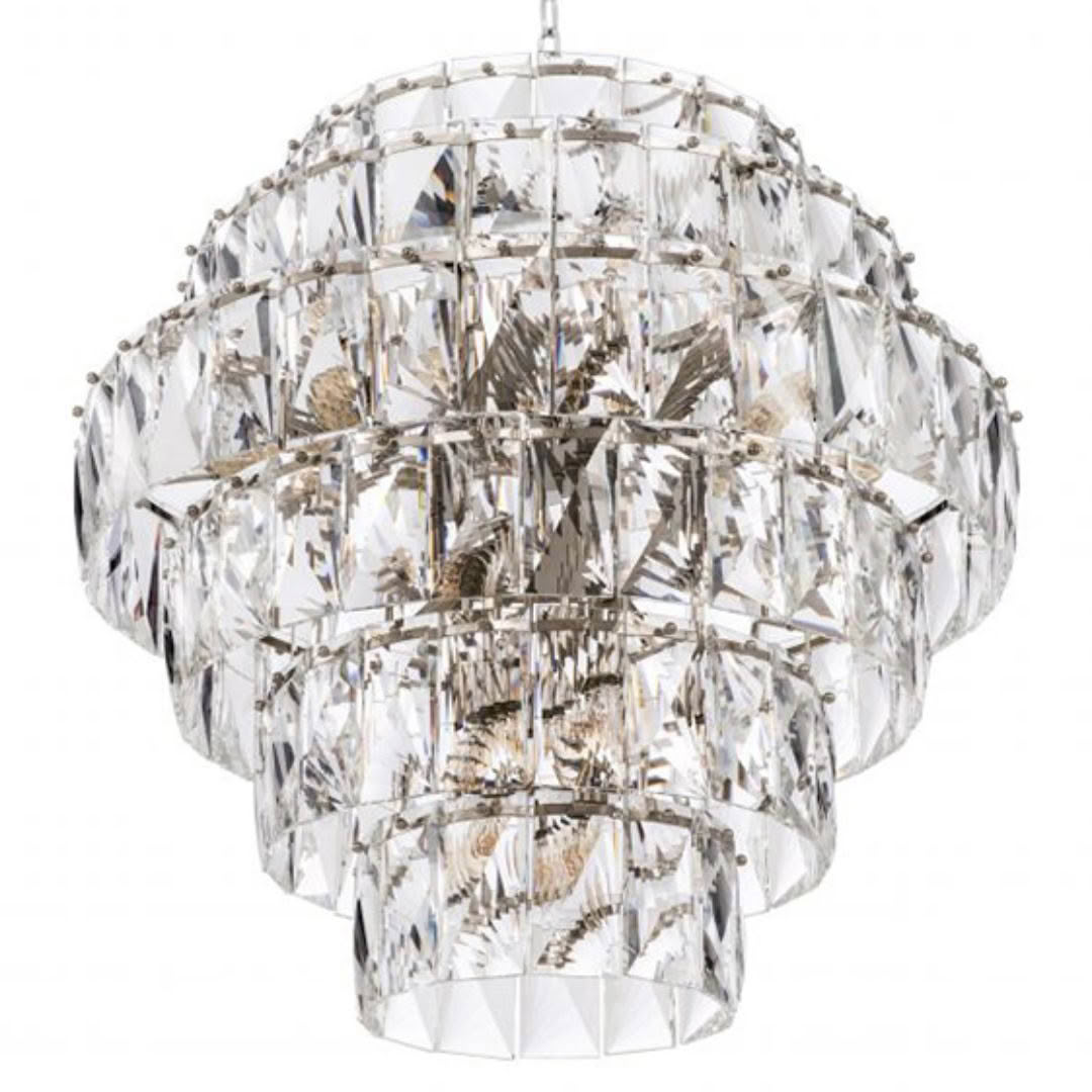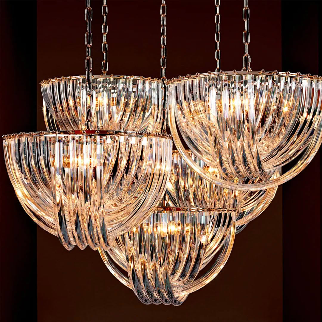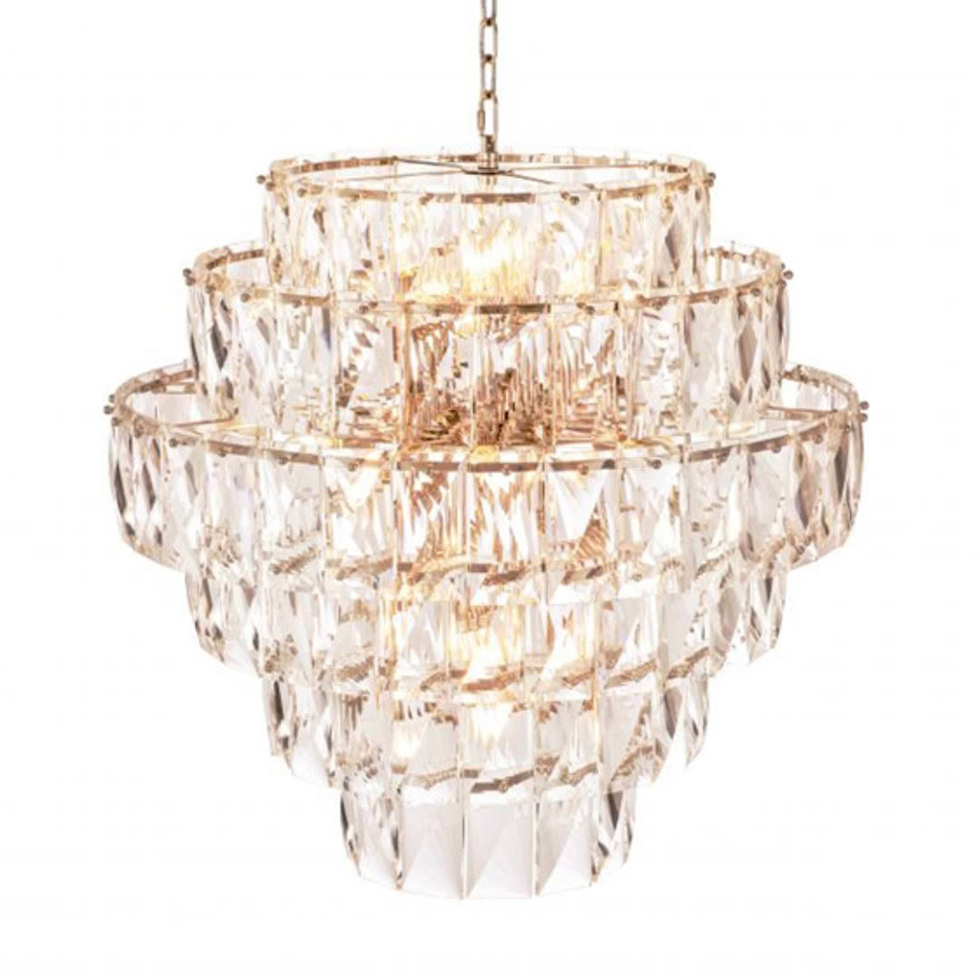 Elegant gold crystal chandelier with lights onElegant golden chandelier with crystals and intricate designs