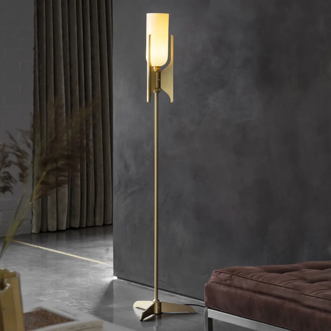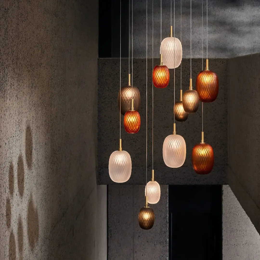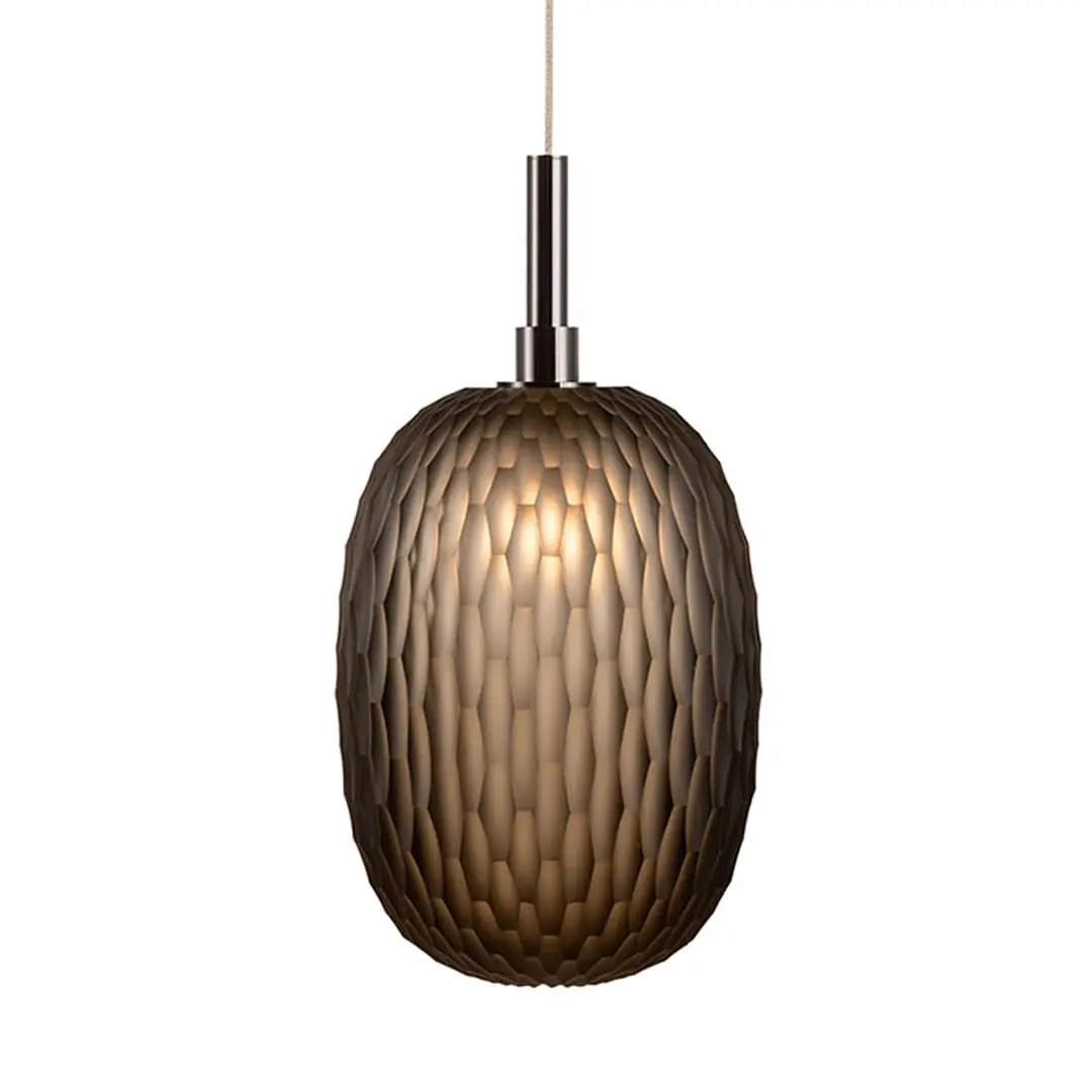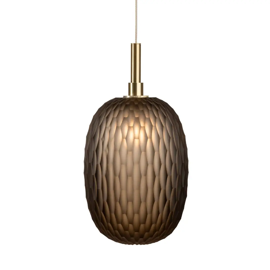 Modern hanging pendant light with frosted glassElegant pendant lights with gold accents against gray wall