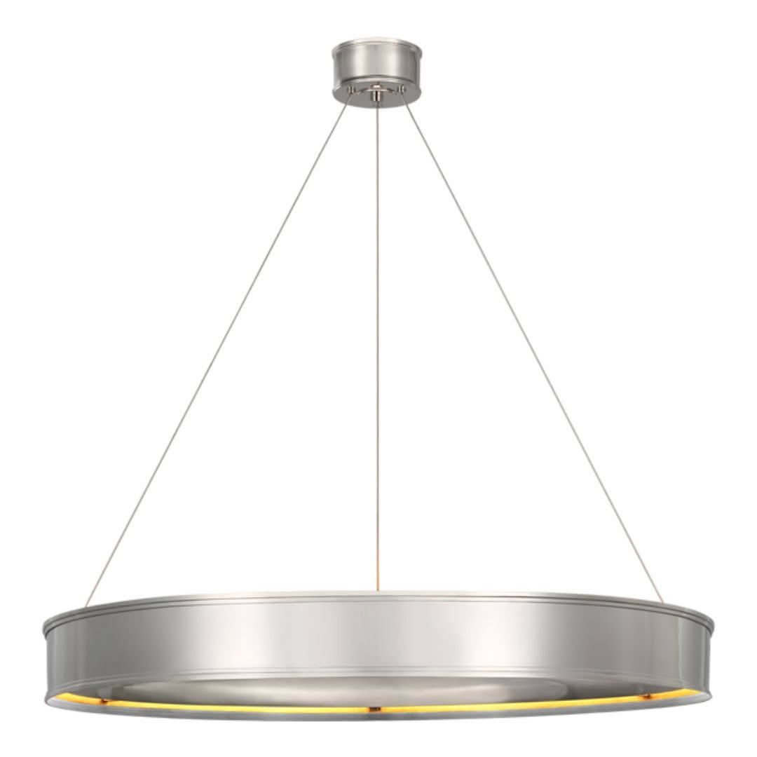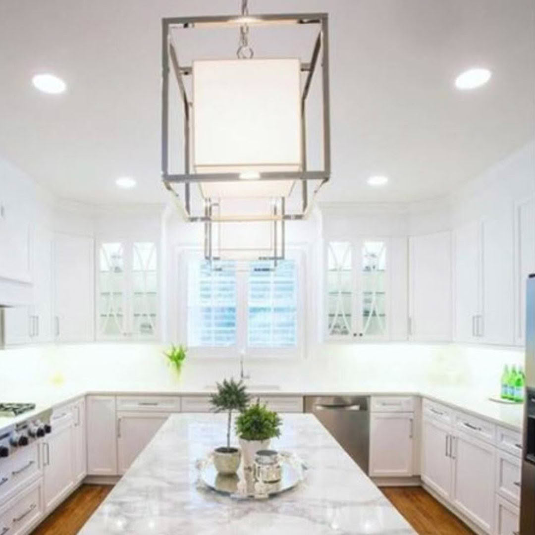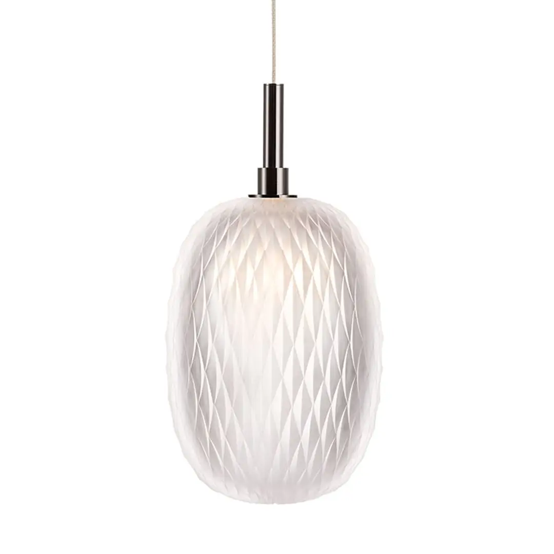 Elegant pendant light with white shade and brass accentsModern pendant light with white shade and chrome finish