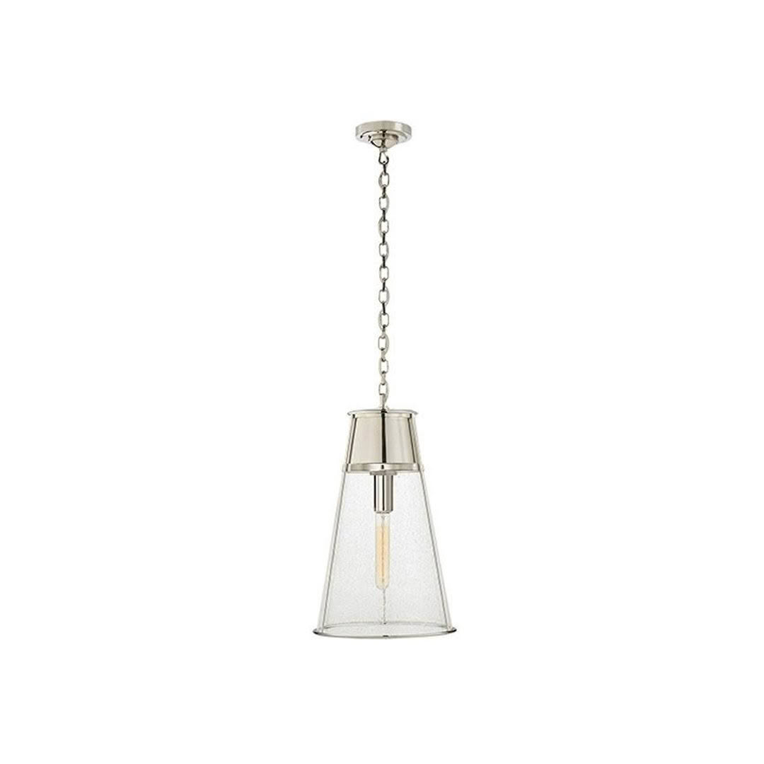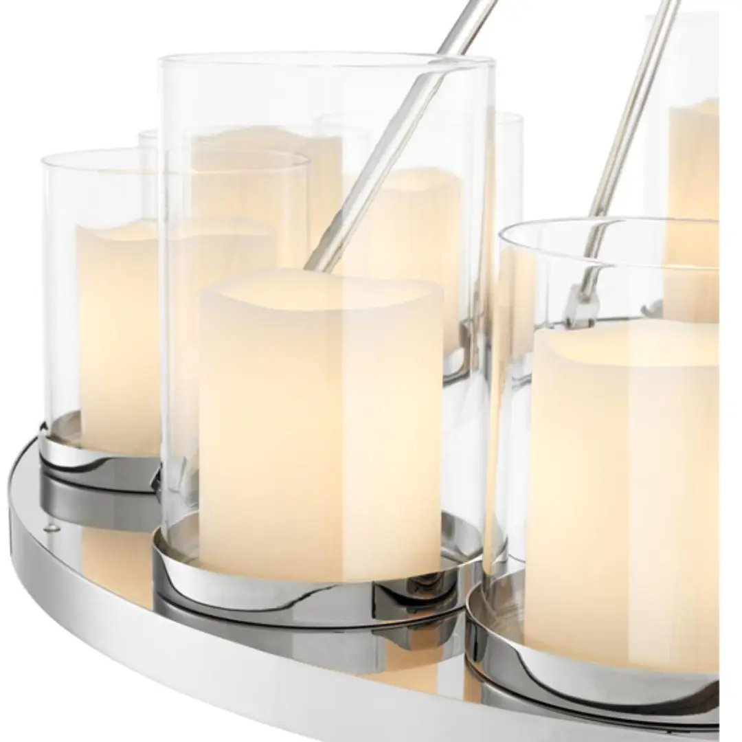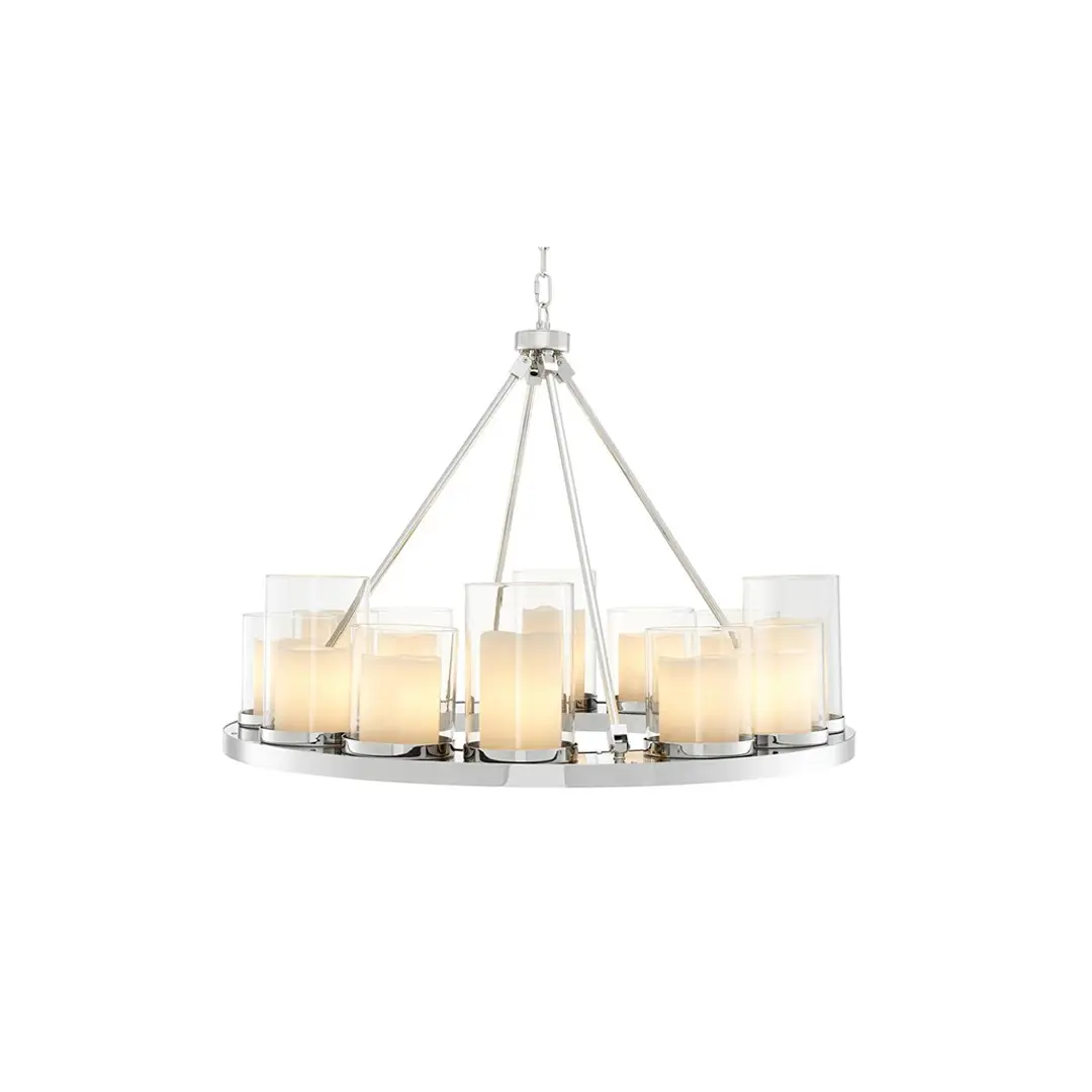 Elegant white pendant chandelier with transparent shadeElegant glass chandelier with metal frame and chain