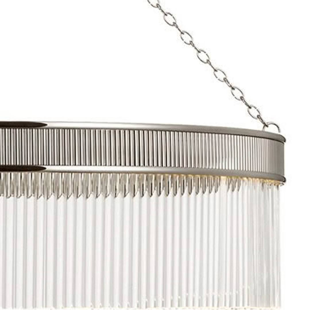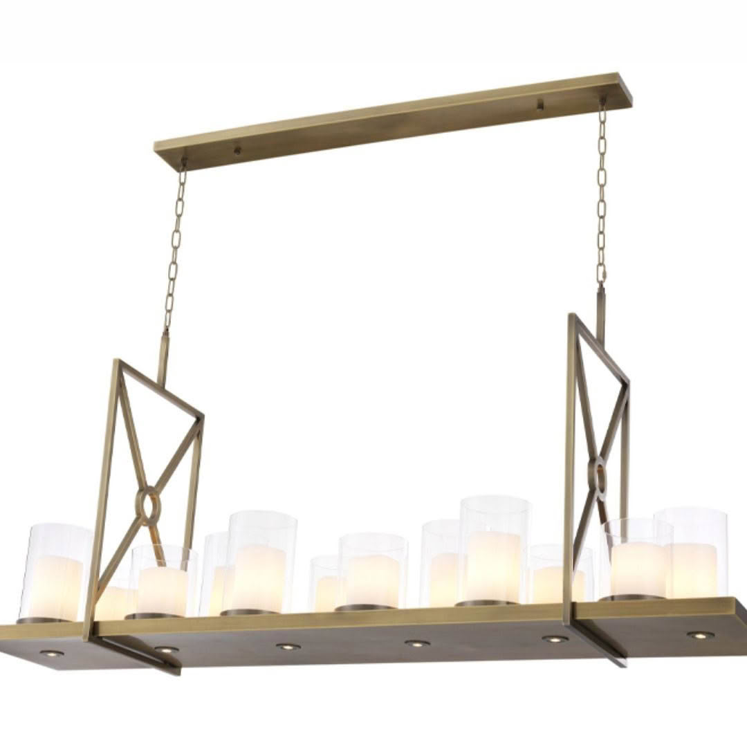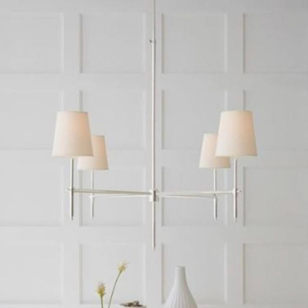 Elegant white pendant chandelier with transparent shadeElegant glass chandelier with metal frame and chain