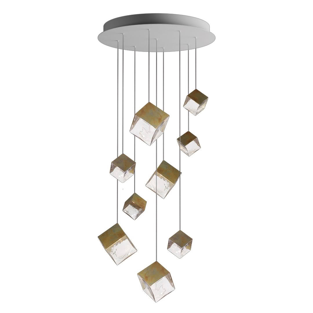 Pyrite – The fiery stone from the core of the Earth. The sculptural structures of minerals and their perfectly smooth surfaces are among the most precious treasures from the very core of the Earth, only revealing their optical magic once they encounter a source of light. By blowing a molten organic substance into a precise cold form, the skilled hands of our glassmakers create a unique light fixture of elemental, yet perfect shape. The gleaming surface of this hand-blown crystal cube is enclosed from three sides by a polished metal component in either silver or gold tones. The Pyrite Collection excels in both exceptional design and top-quality materials. Easily combined, it invites you to create your own unique lighting constellations.