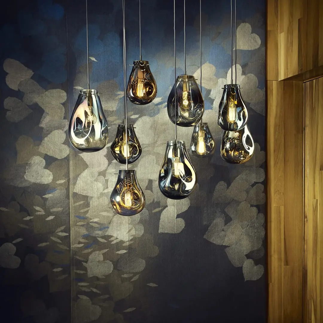 Varied colors, transparency and continuously changing shapes – the characteristic features of soap bubbles–inspired this BOMMA collection. When lighted, the metallic sheen of its surface transforms to iridescent and translucent, exposing its crystal character. The entire collection is produced using the technique of hand-blowing without a form. The seemingly perfect droplet of molten glass is given a unique shape, as well as a unique color spectrum. Among Soap Collection’s main advantages are the options to create impressive compositions from a larger number of individual light fixtures or combining their color schemes.