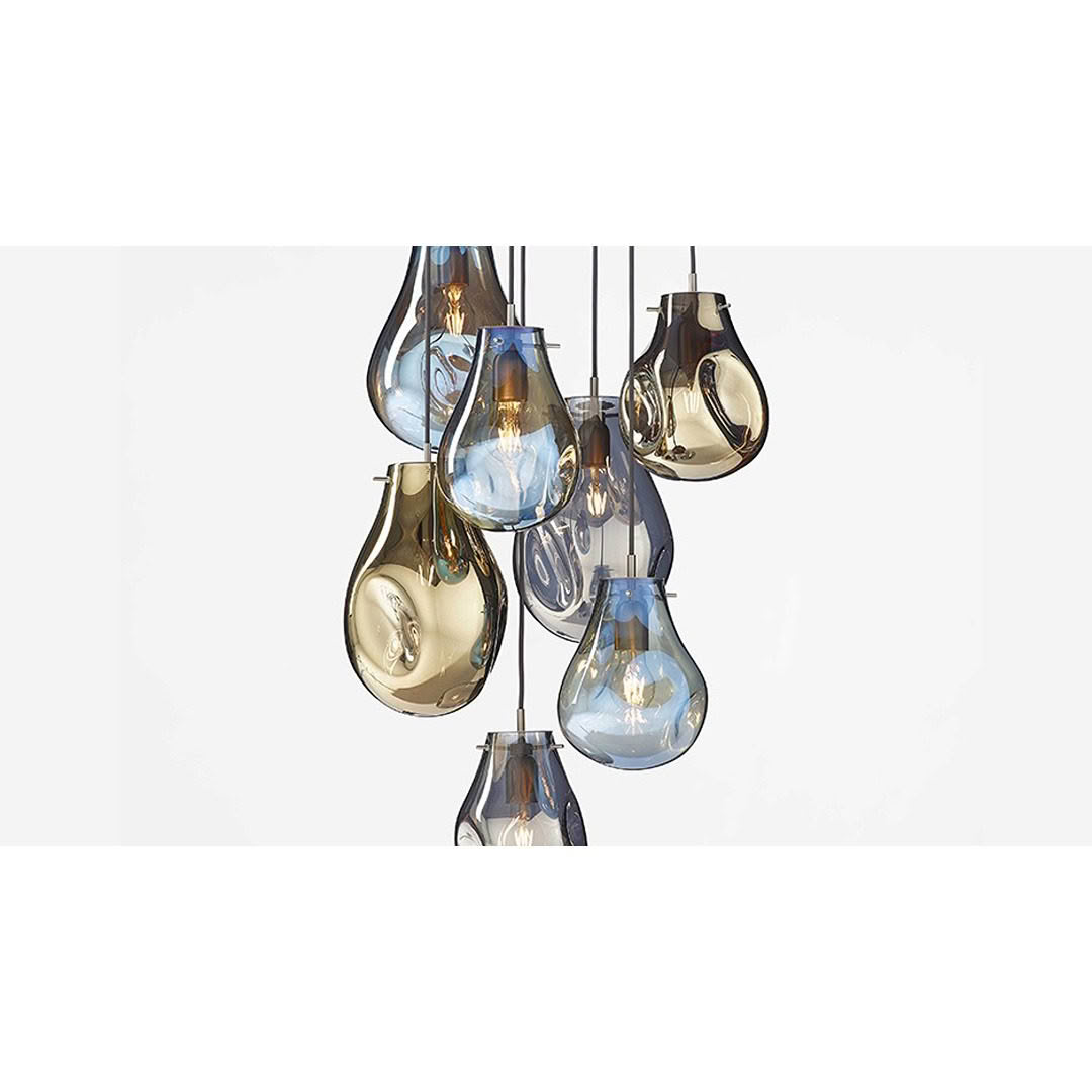 The SOAP pendant from BOMMA is available in two sizes (small & large) and multiple colourways (Silver, Gold, Blue). This pendant is made from Hand-blown crystal so the sizes and shape do vary for each light.