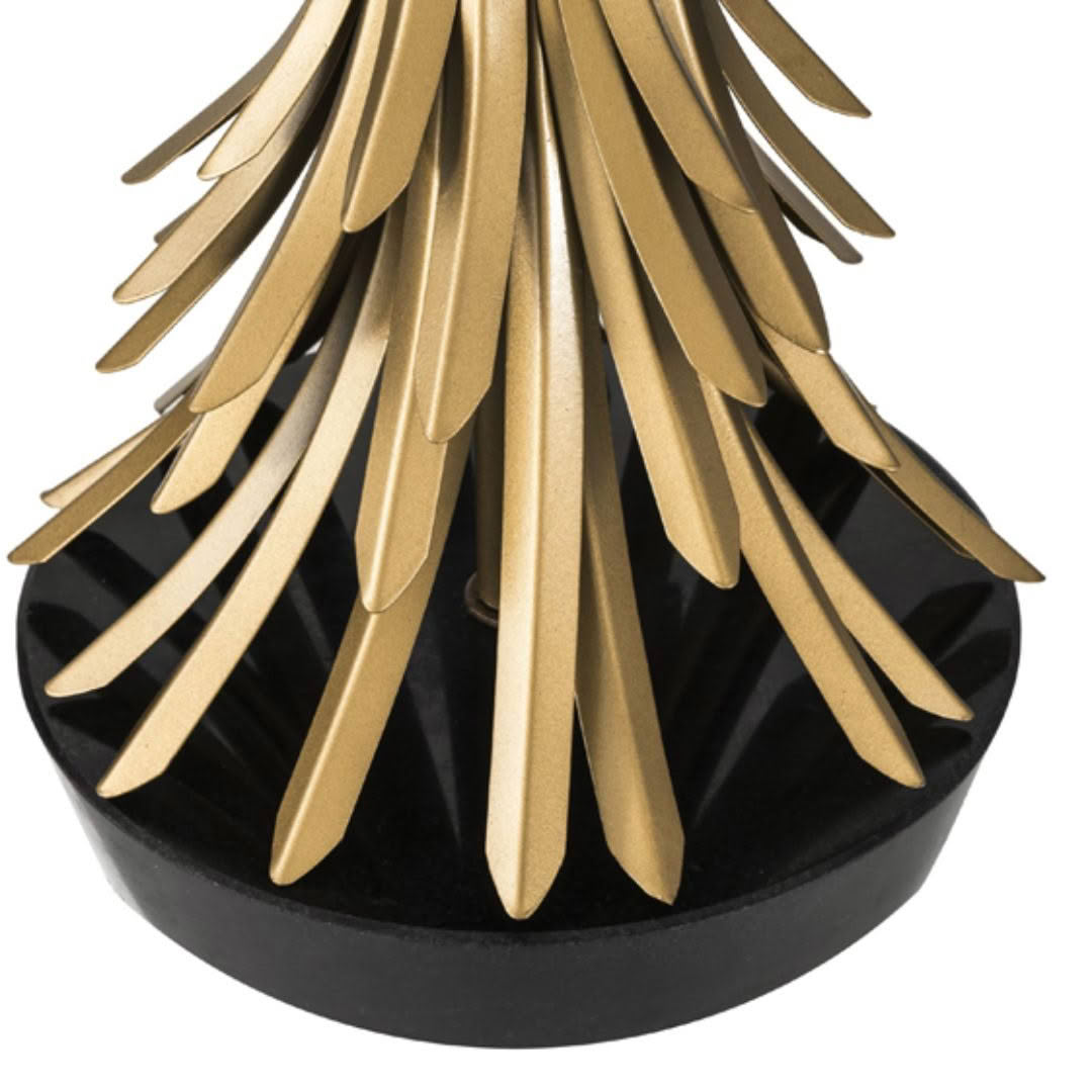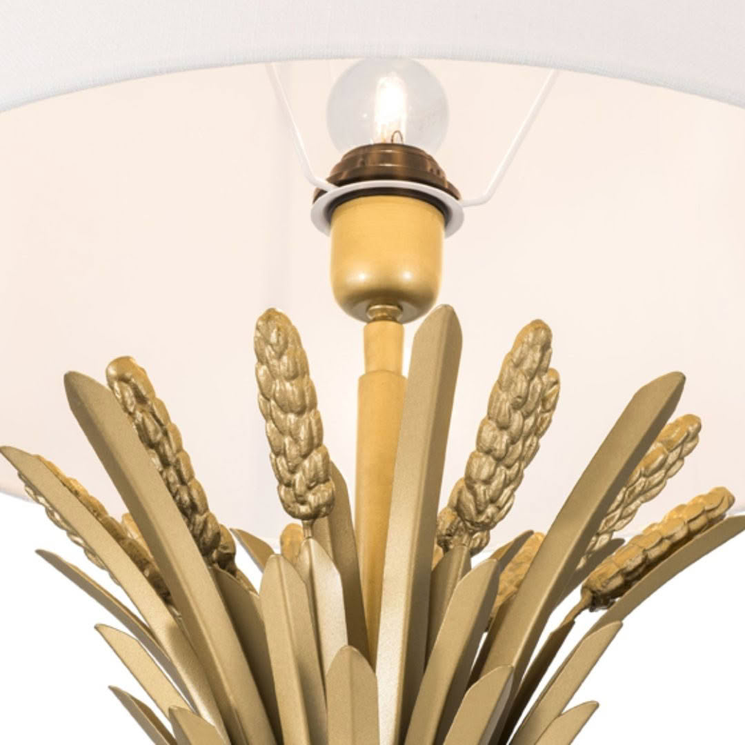 Supported by a black granite plinth base, the dazzling Bonheur Table Lamp features a wheat sheaf sculpted from iron with antique gold finish. It comes with a white lampshade.