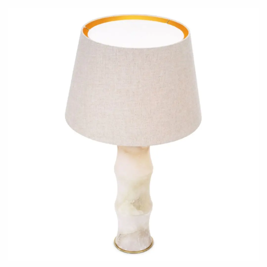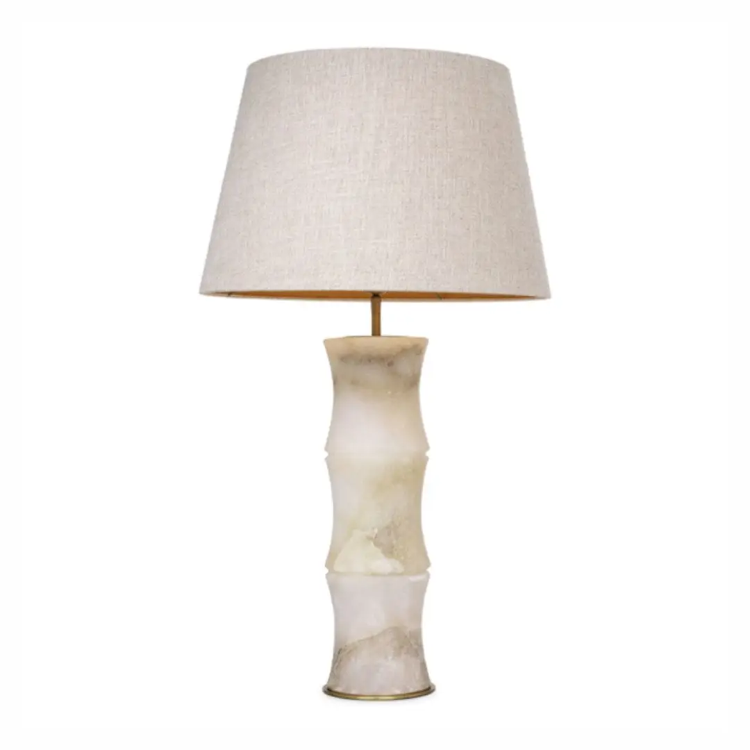 Spruce up your home with Table Lamp Bonny. This piece features a durable, alabaster base in the shape of a bamboo stem. It is topped with a conical drum fabric shade in a linen look fabric. Whether in a traditional, modern, or eclectic setting, it is set to become a distinctive highlight of any interior.
