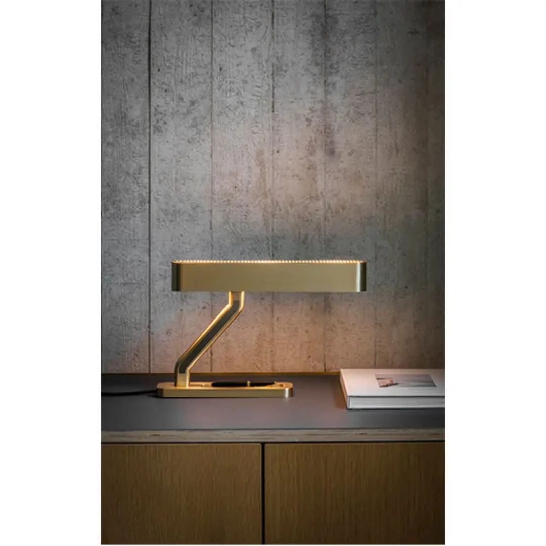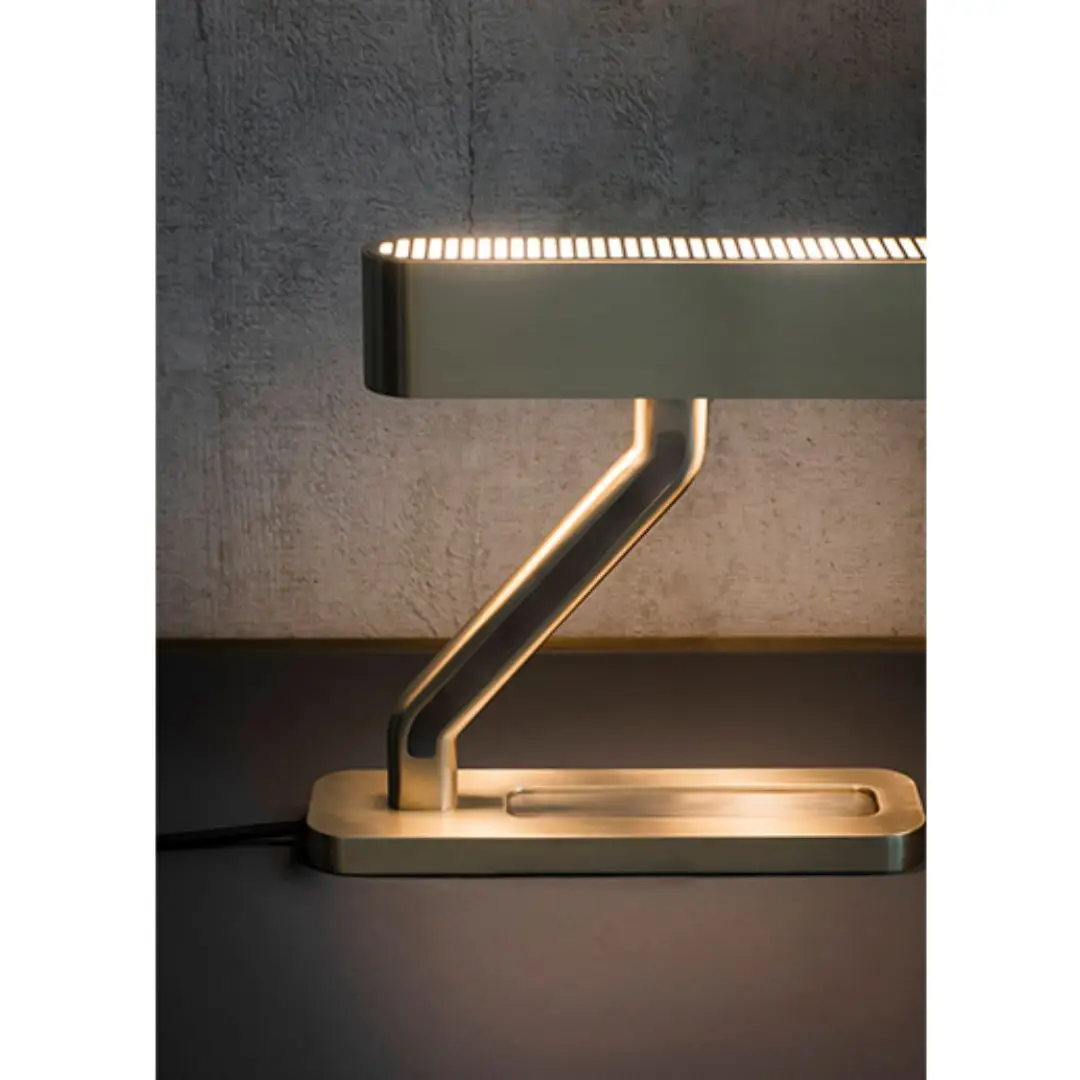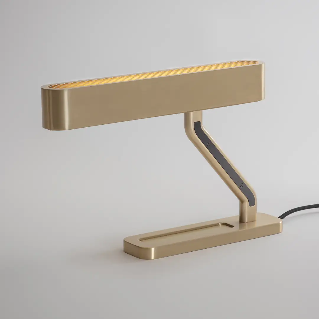 A machined brass grill lends an industrial feel to the sleek Colt Table Light. Featuring bronze inserts on the arm and opal diffusers for a soft, warm light, an inbuilt pen tray highlights Bert Frank’s signature attention to detail.