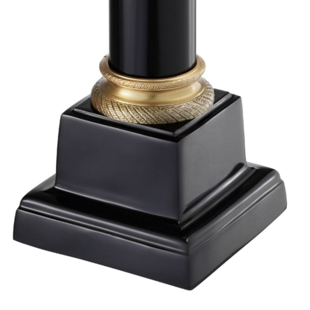 Add the finishing touch to your interior scheme with the Monaco Table Lamp. Radiating restrained elegance, this luxury lighting solution is the perfect complement for classic and contemporary spaces alike. Inspired by Corinthian columns, it features a pillar-like black body and plinth base with brass finished accents. The supplied black lampshade encourages a decadent illumination.