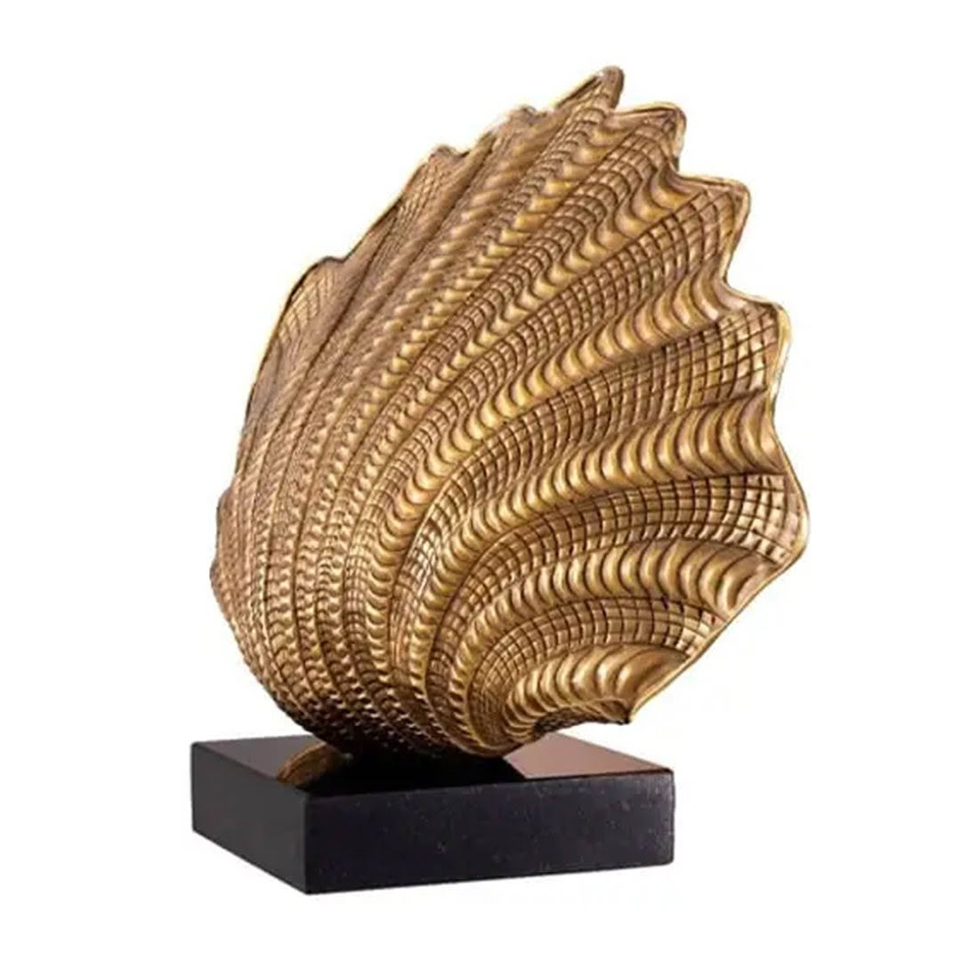Golden shell sculpture on black base