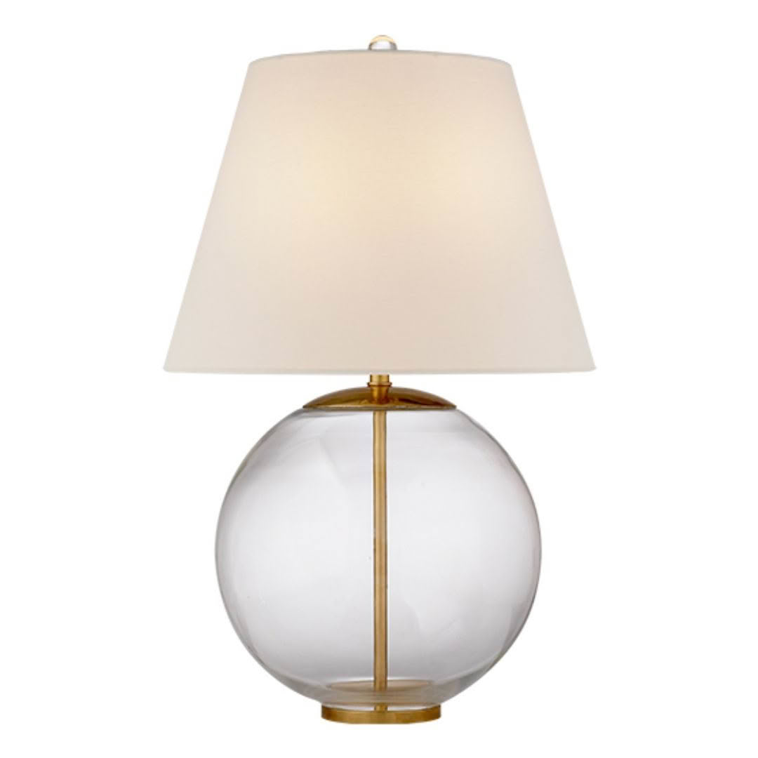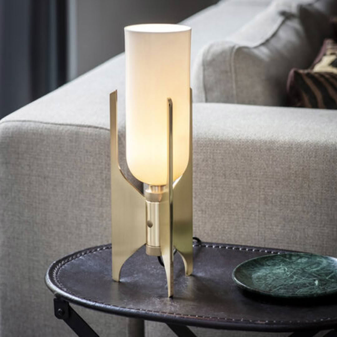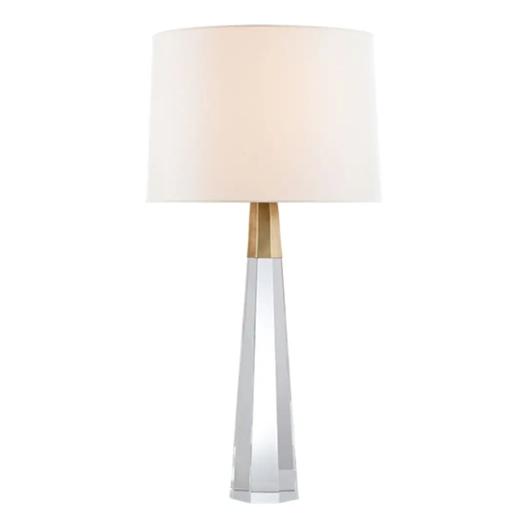 Elegant glass and brass table lamp with white shade