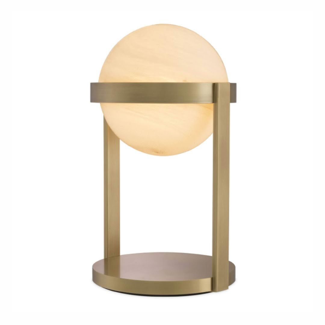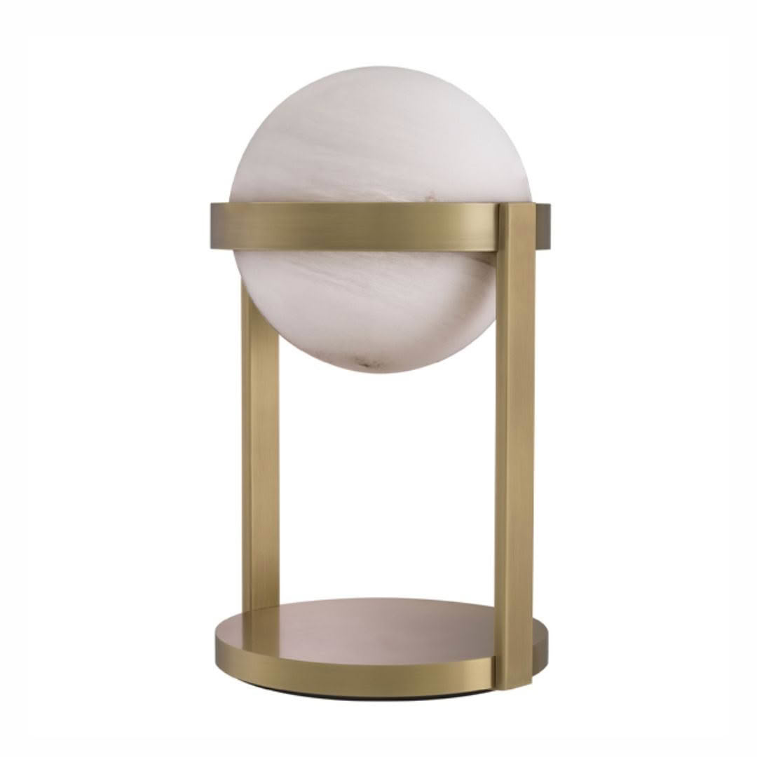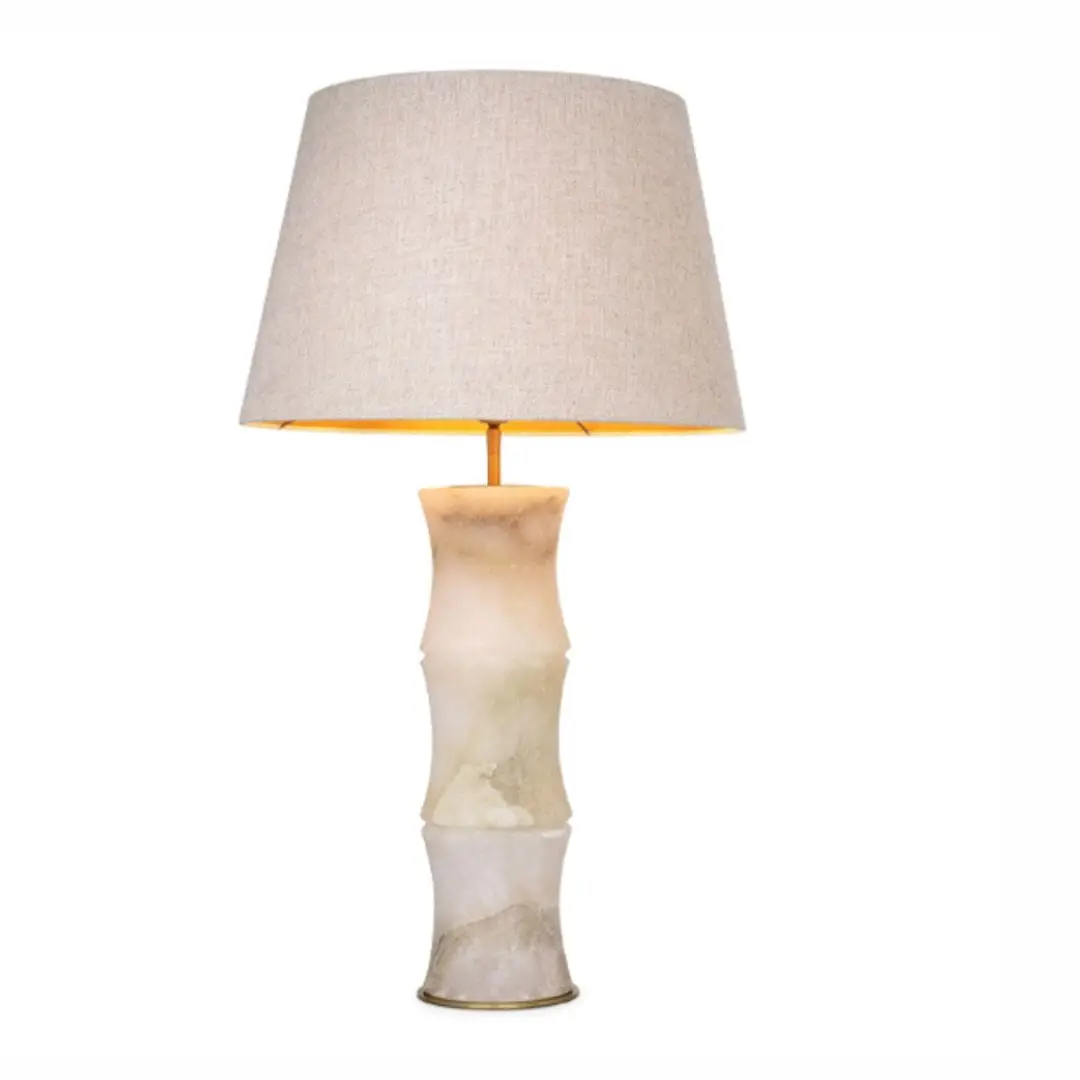 Elegant alabaster table lamp with square linen shadeElegant marble table lamp beside a beige sofa