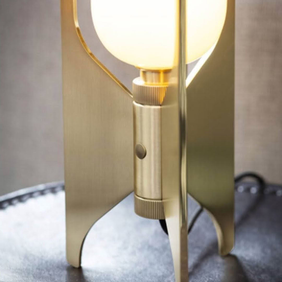 Contemporary golden arch table lamp with white shade