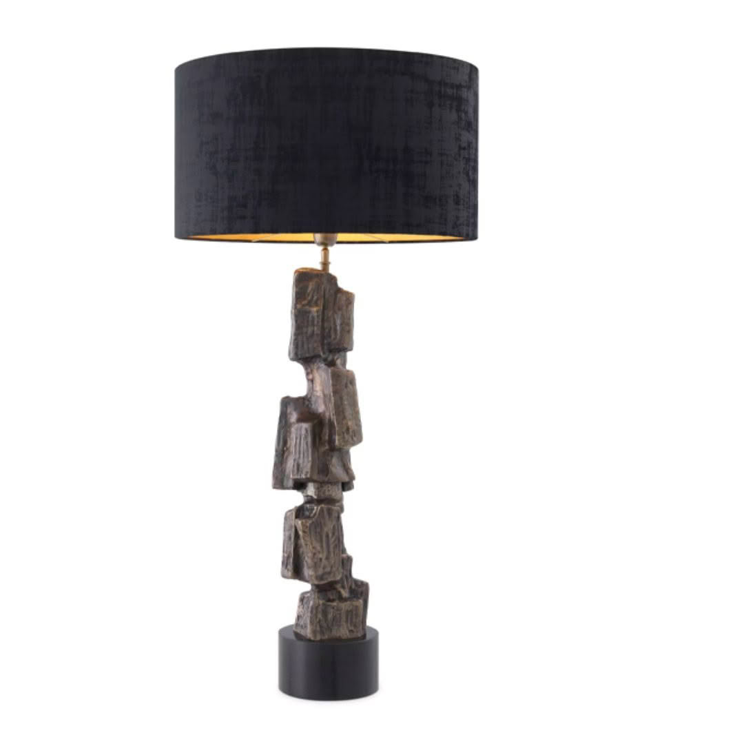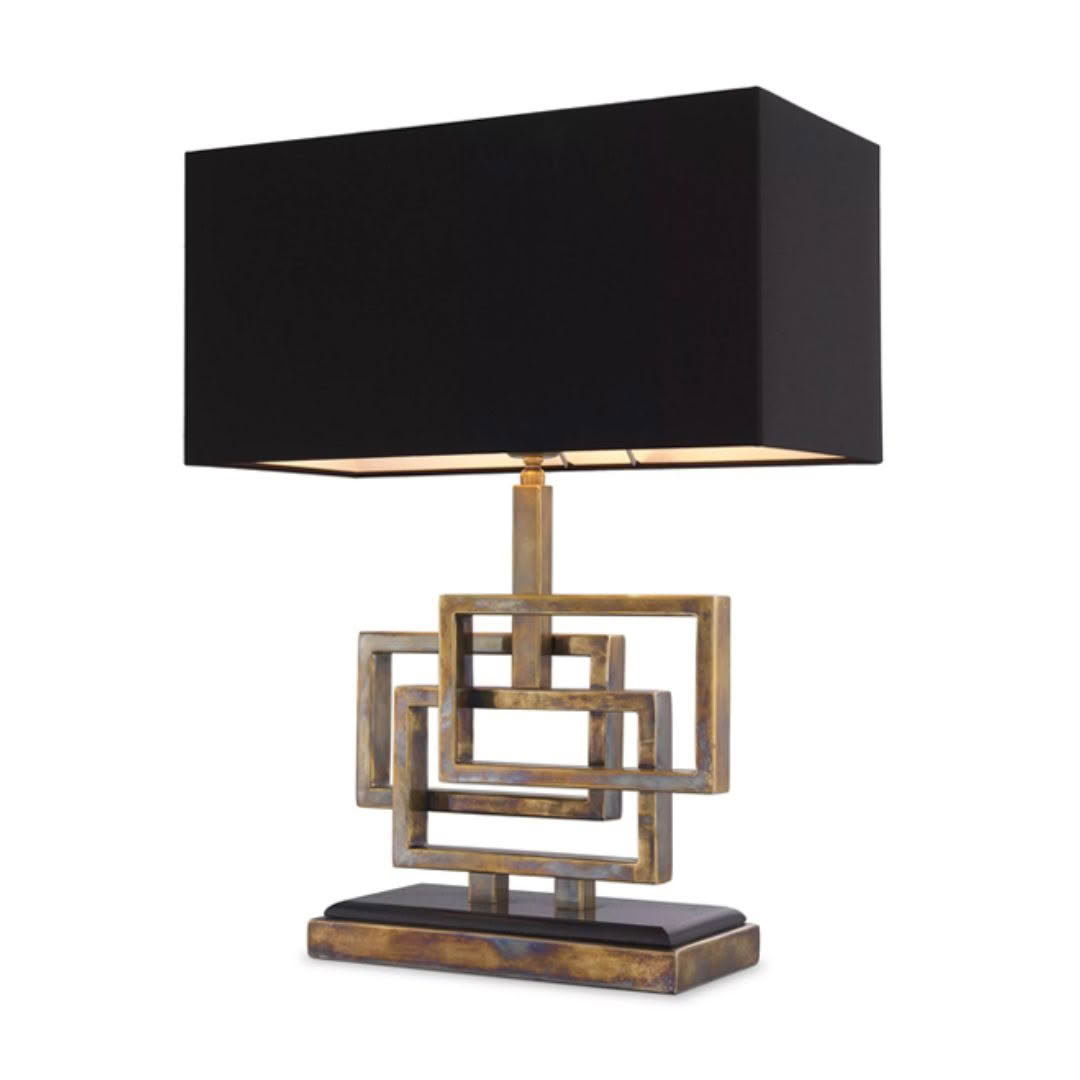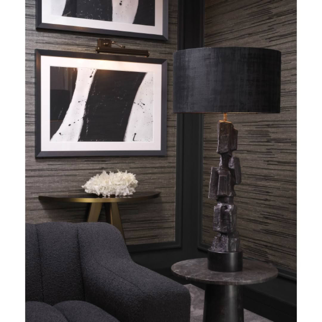 Modern rectangular table lamp with black shade and baseElegant living room with textured walls and modern decor