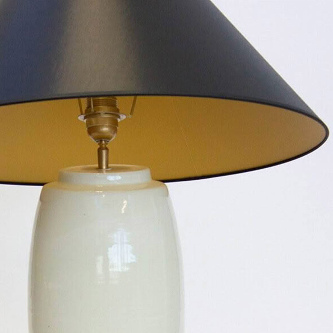 The shade we are supplying with the Repha Table Lamp is Black with a gold interior and the dimensions are – 55cm dia at the base x 18cm dia at the top x 23cm High