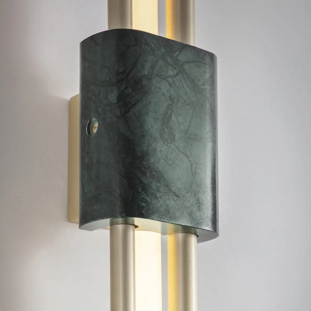 The big brother to the Tanto Wall Light, this larger version has long and sculptural asymmetric brass rods combined with an opal lamp.