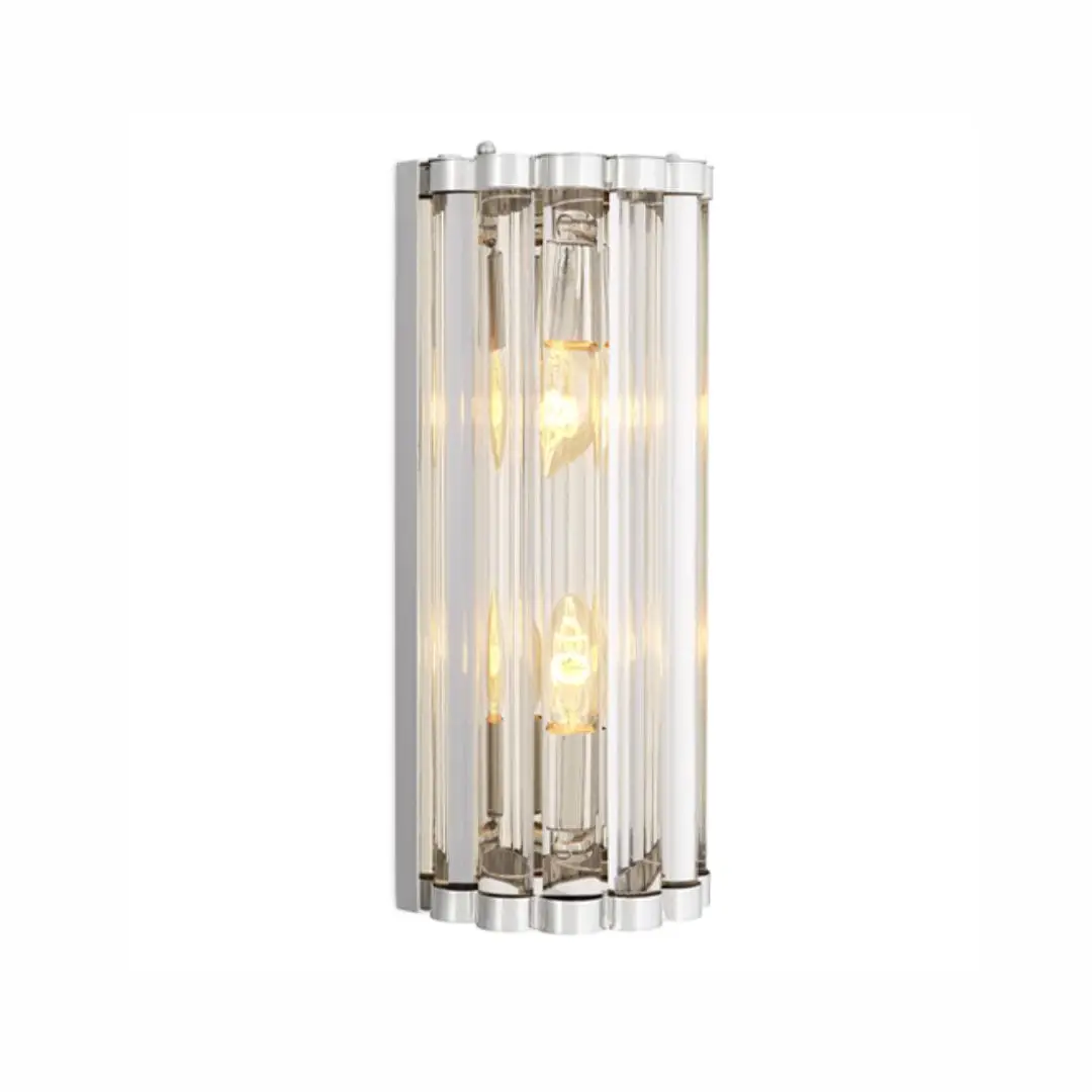 Elegant cylindrical glass rod chandelier with illuminated interior