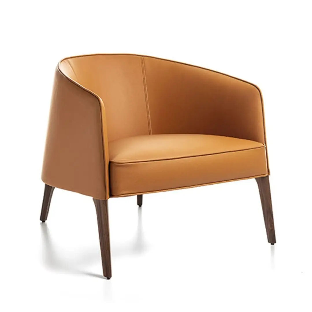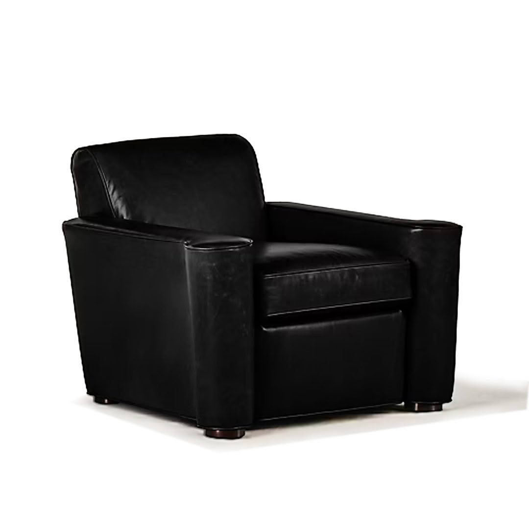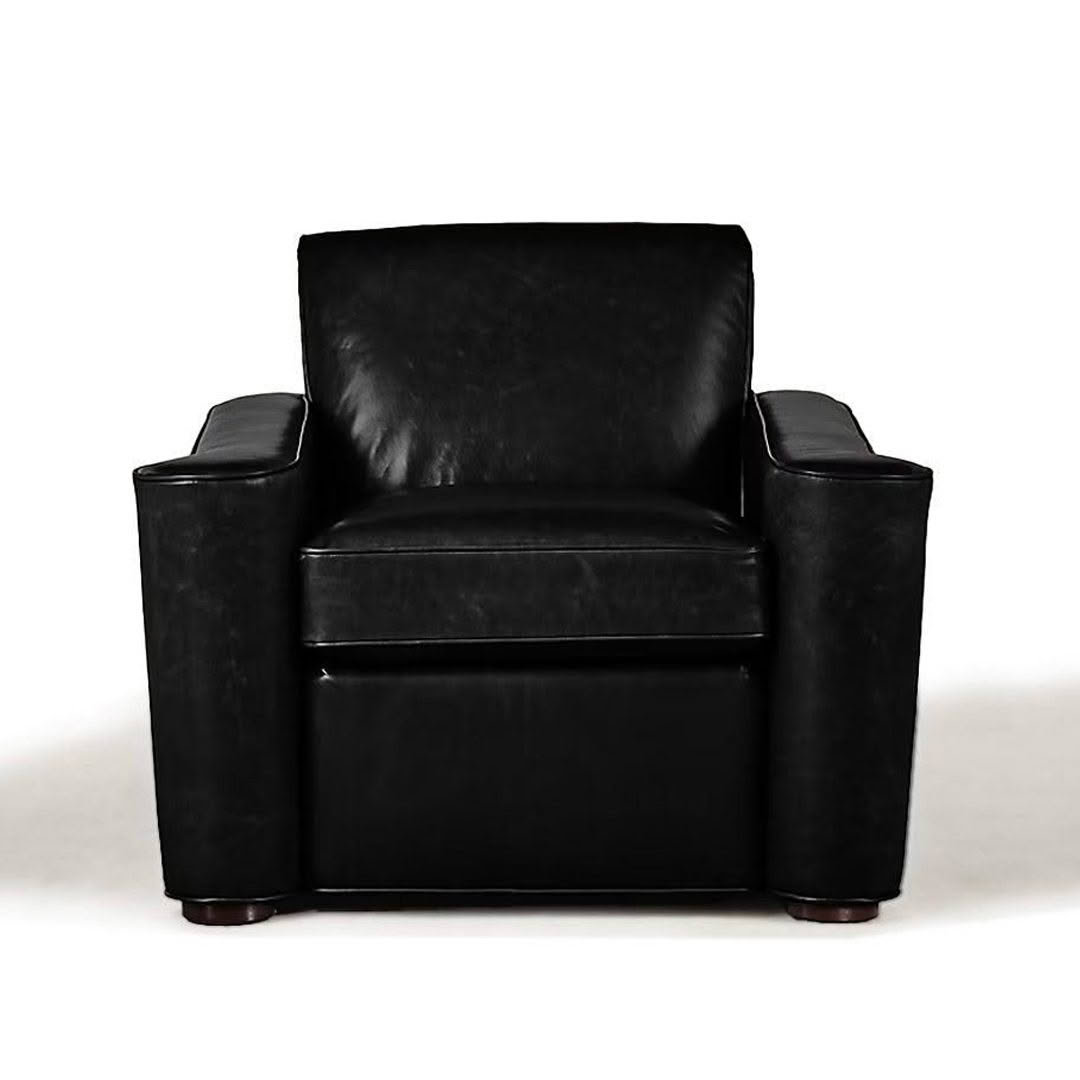 Elegant black leather armchair with wooden legsElegant black leather armchair with wooden legs