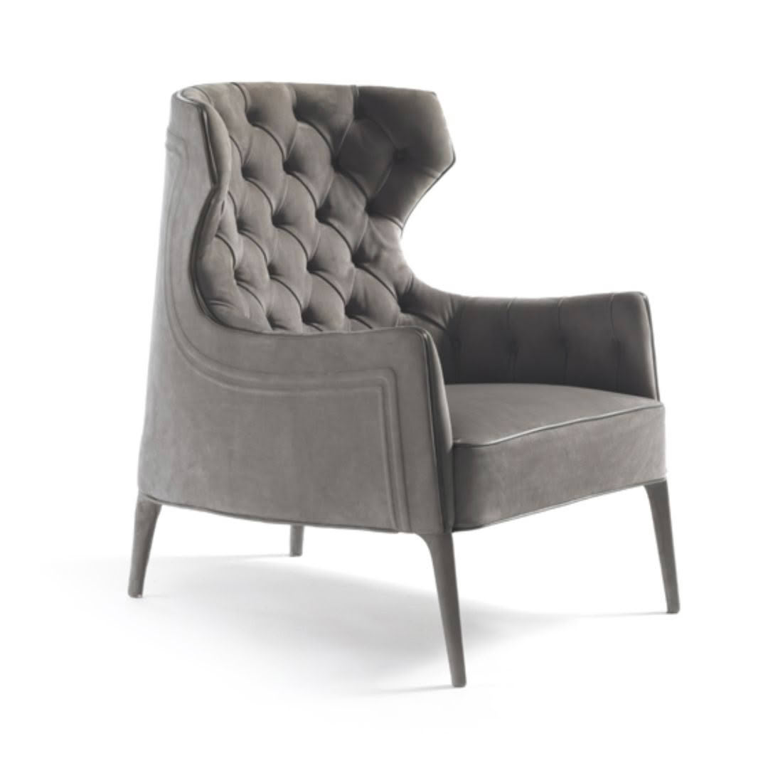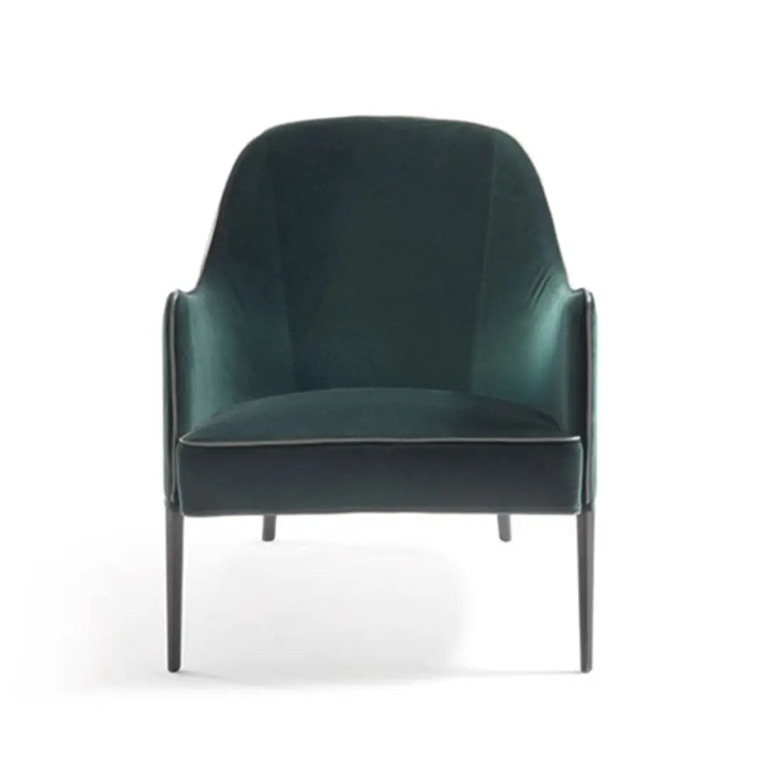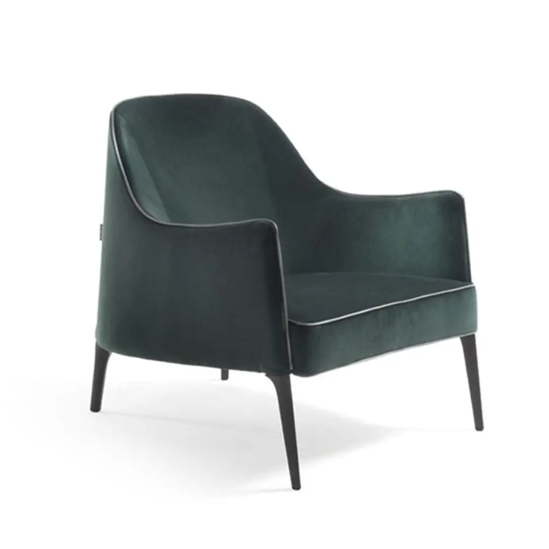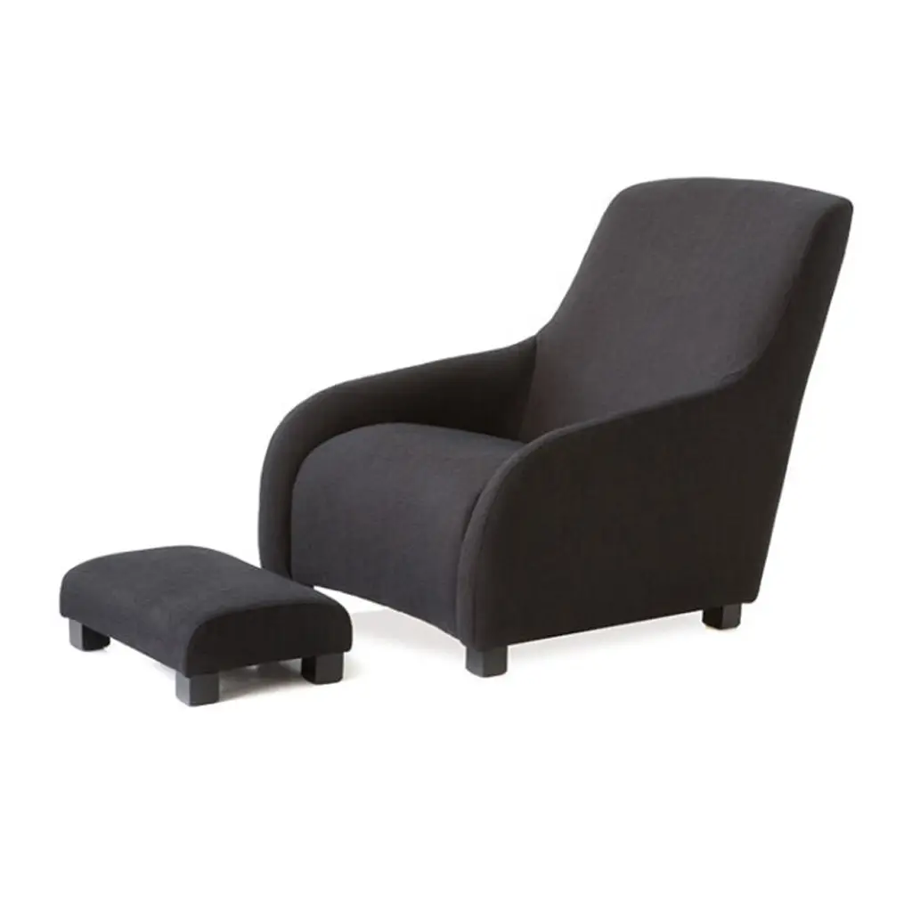 Elegant black leather armchair with wooden legsElegant black leather armchair with wooden legs
