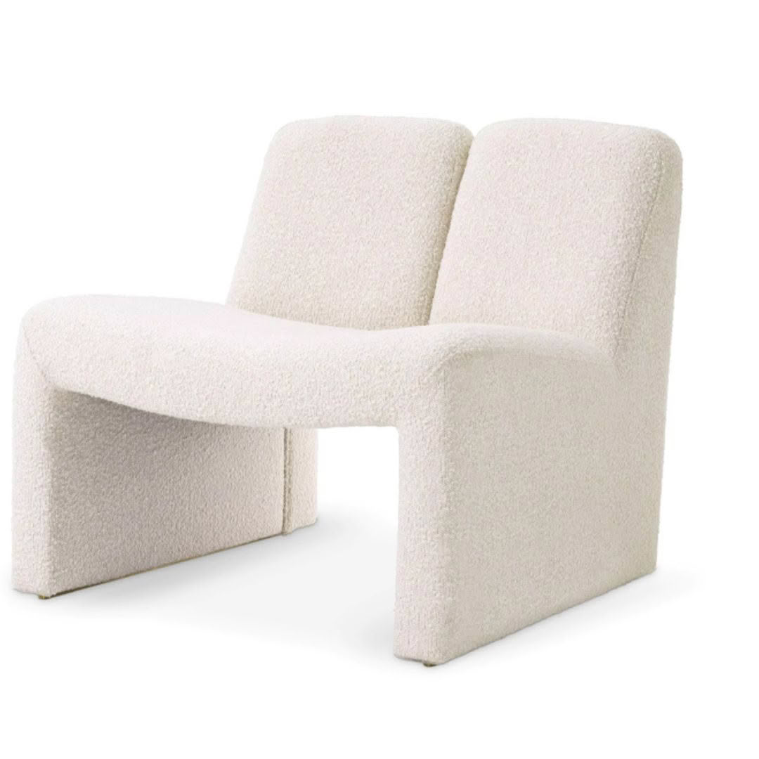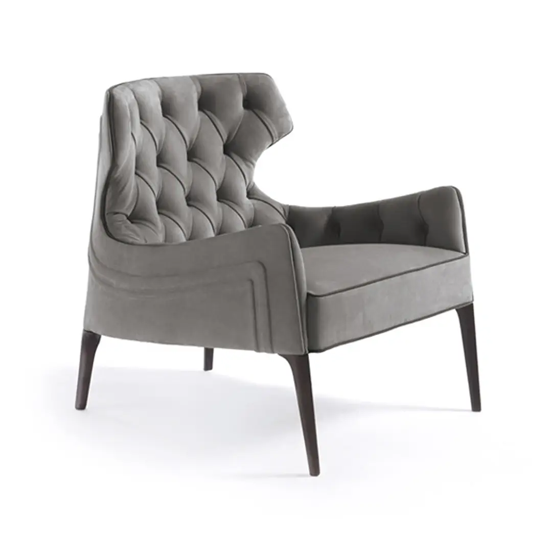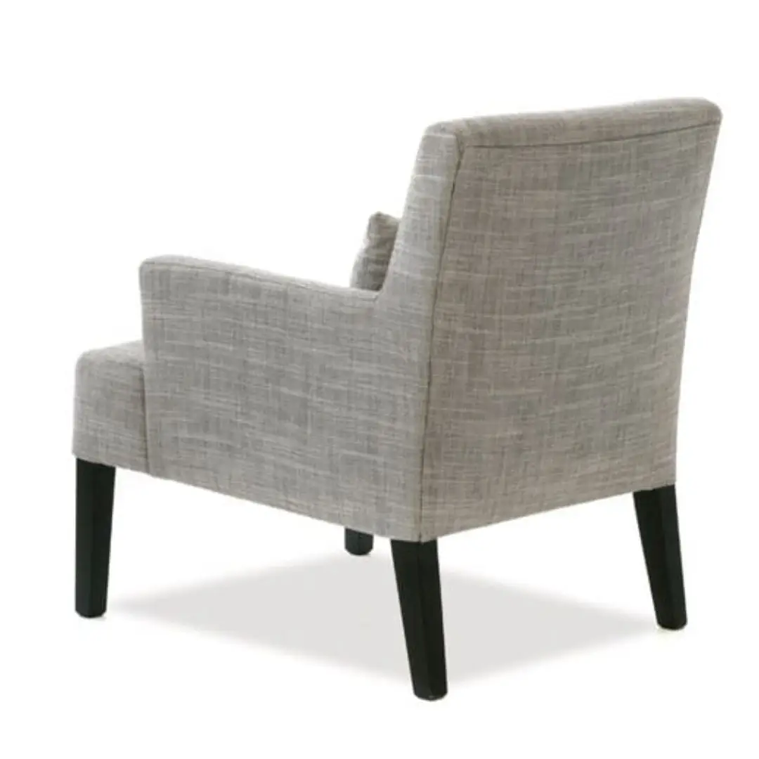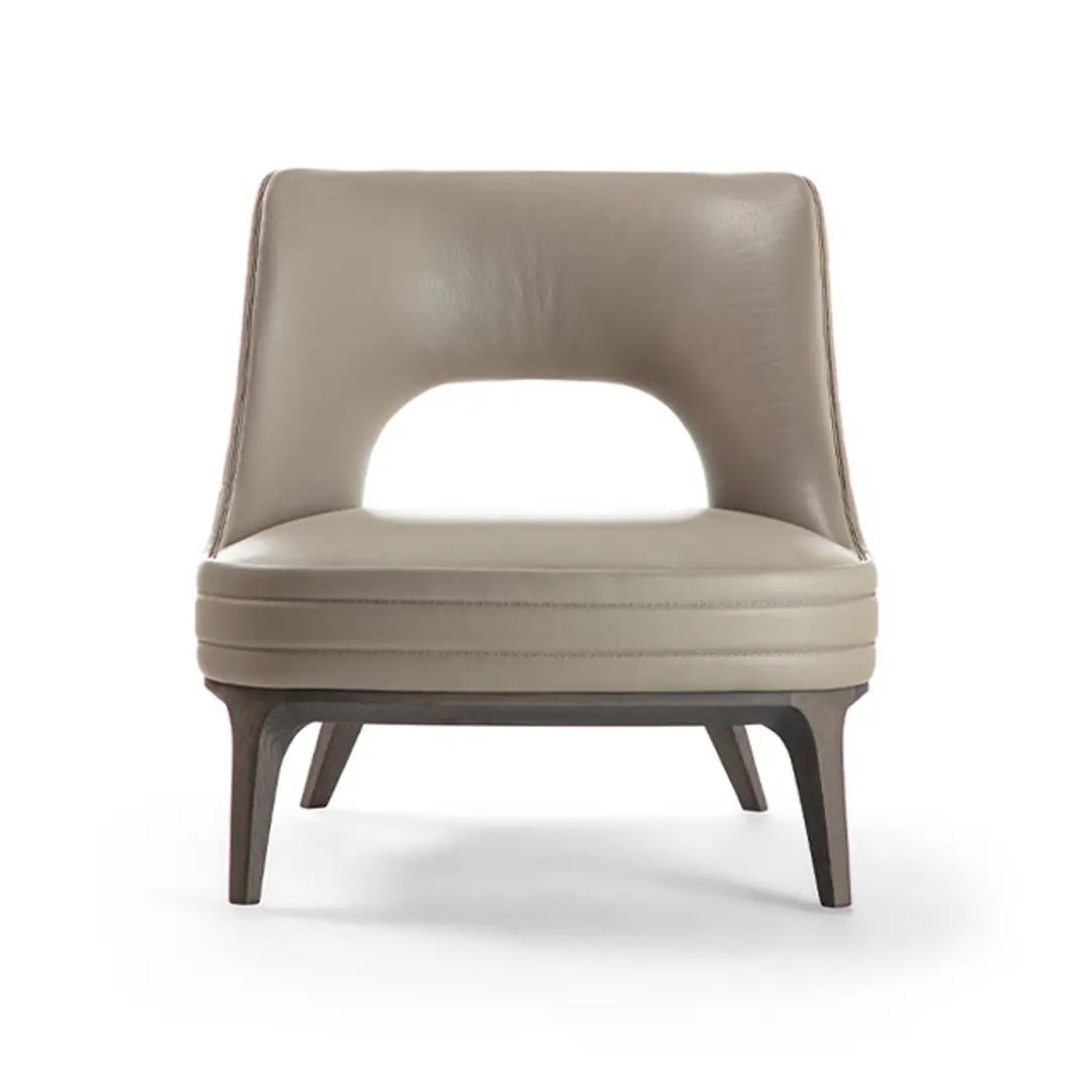 Elegant beige upholstered chair with dark wooden legsElegant cream upholstered chair with dark wooden legs