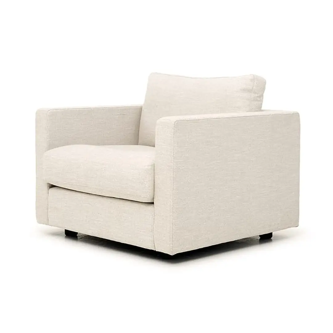 Beige upholstered armchair on white backgroundBeige upholstered armchair isolated on white background