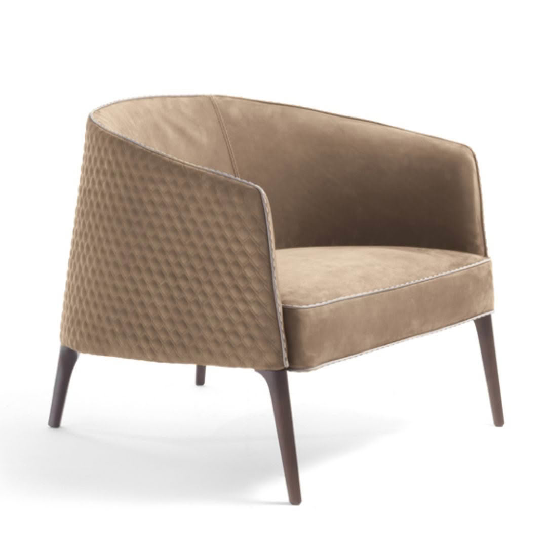 Beige upholstered armchair with wooden legsBeige upholstered armchair with wooden legs isolated on white