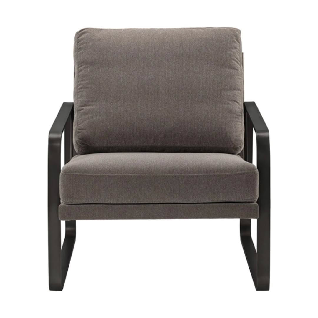 Modern gray fabric armchair on white backgroundModern gray fabric armchair on white background