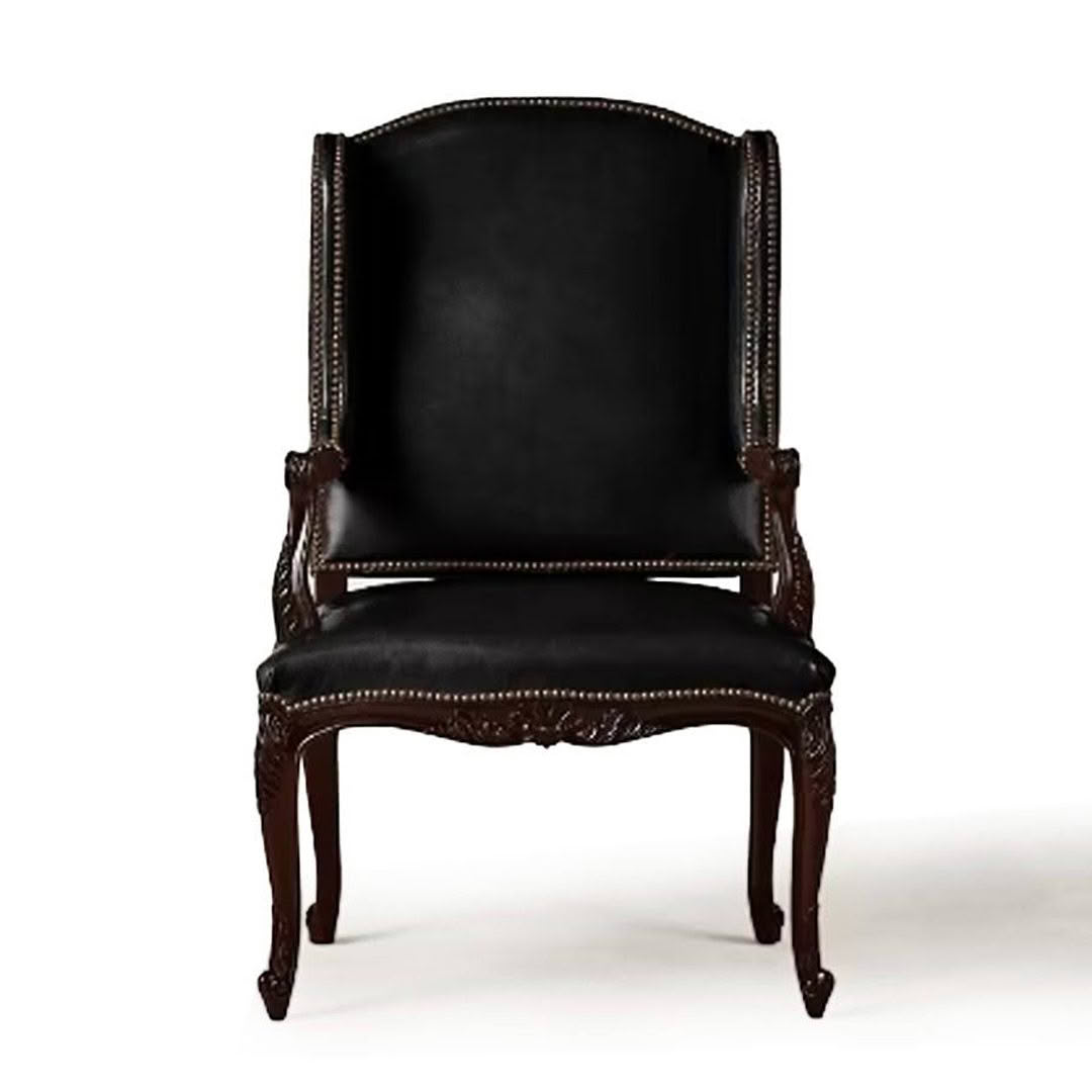 Elegant antique wooden armchair with black upholsteryAntique wooden chair with black leather upholstery