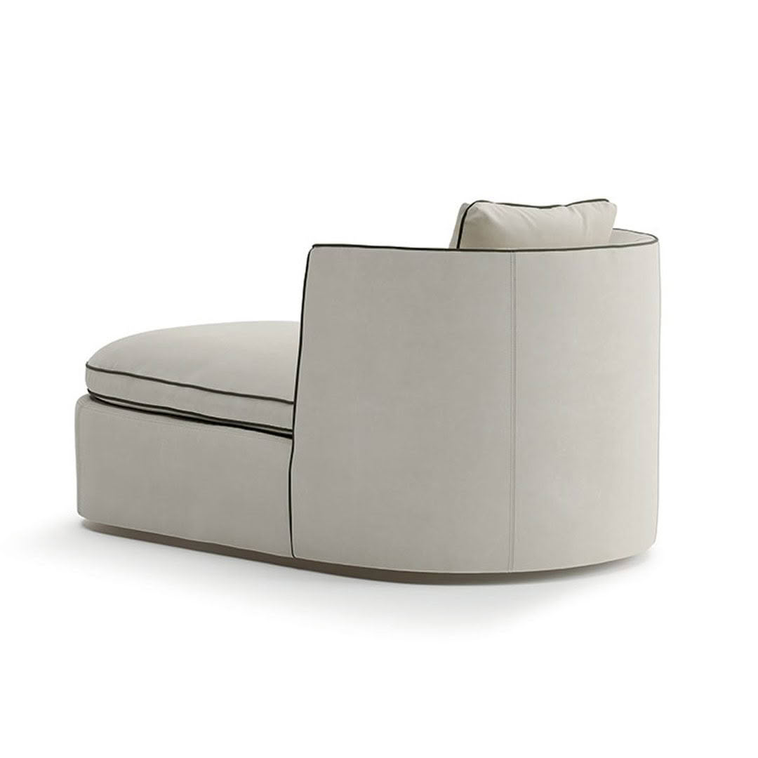 Litta Longue armchair, in its sophisticated simplicity, underlines the concept of comfort, without sacrificing class. Litta Longue is a refined object full of fine details. The backrest turns into an armrest, while a long, soft and comfortable seat encourages relaxation. The piping, tone-on-tone or in contrast, delicately outlines the silhouette. The quilted insert on the internal backrest, accentuated by the contrasting hand-stitched piping, underlines Vittoria Frigerio collection’s sartorial expertise in creating unique pieces.