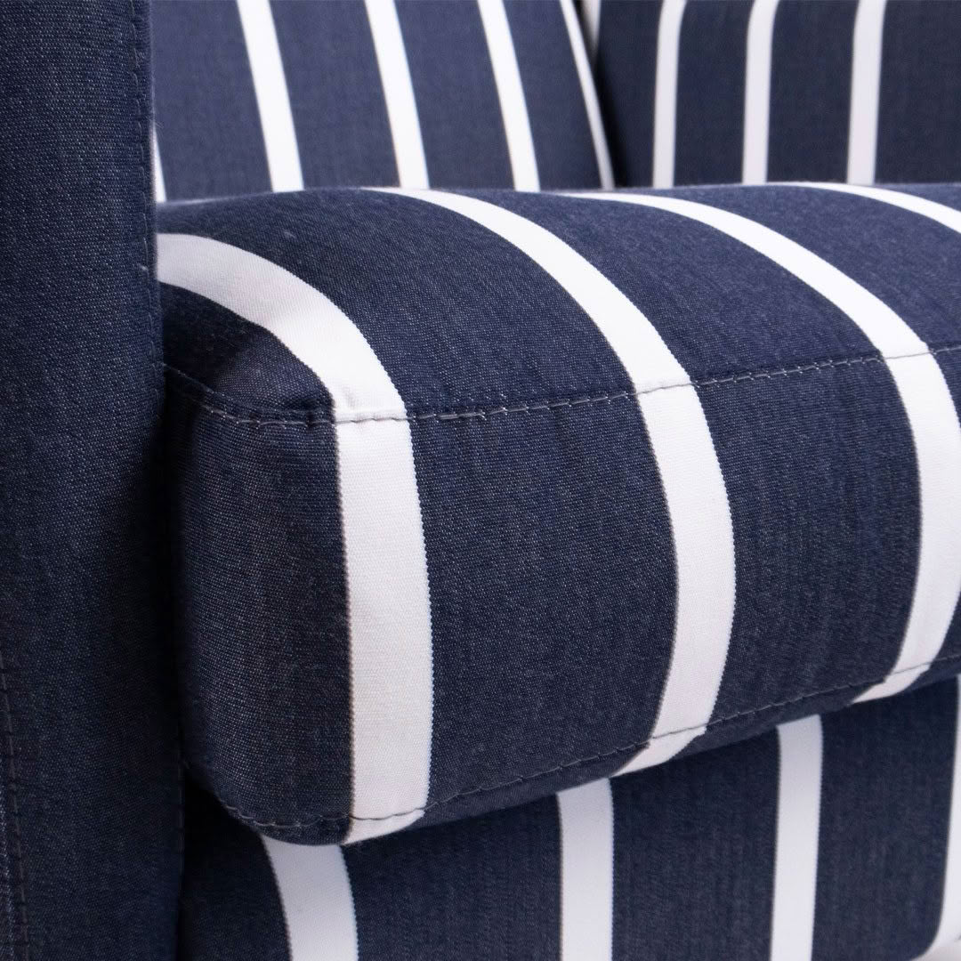 RIVIERA STRIPE OUTDOOR is a soft indoor/outdoor fabric which is stain resistant, fade resistant and washable, which makes for the perfect fabric choice for modern homes. It is also 100% non-toxic, resistant to fungus, bacteria, sunlight, humidity, chlorine, food stains and sweat like no other synthetic or natural fiber. Environmentally friendly and 100% recyclable.