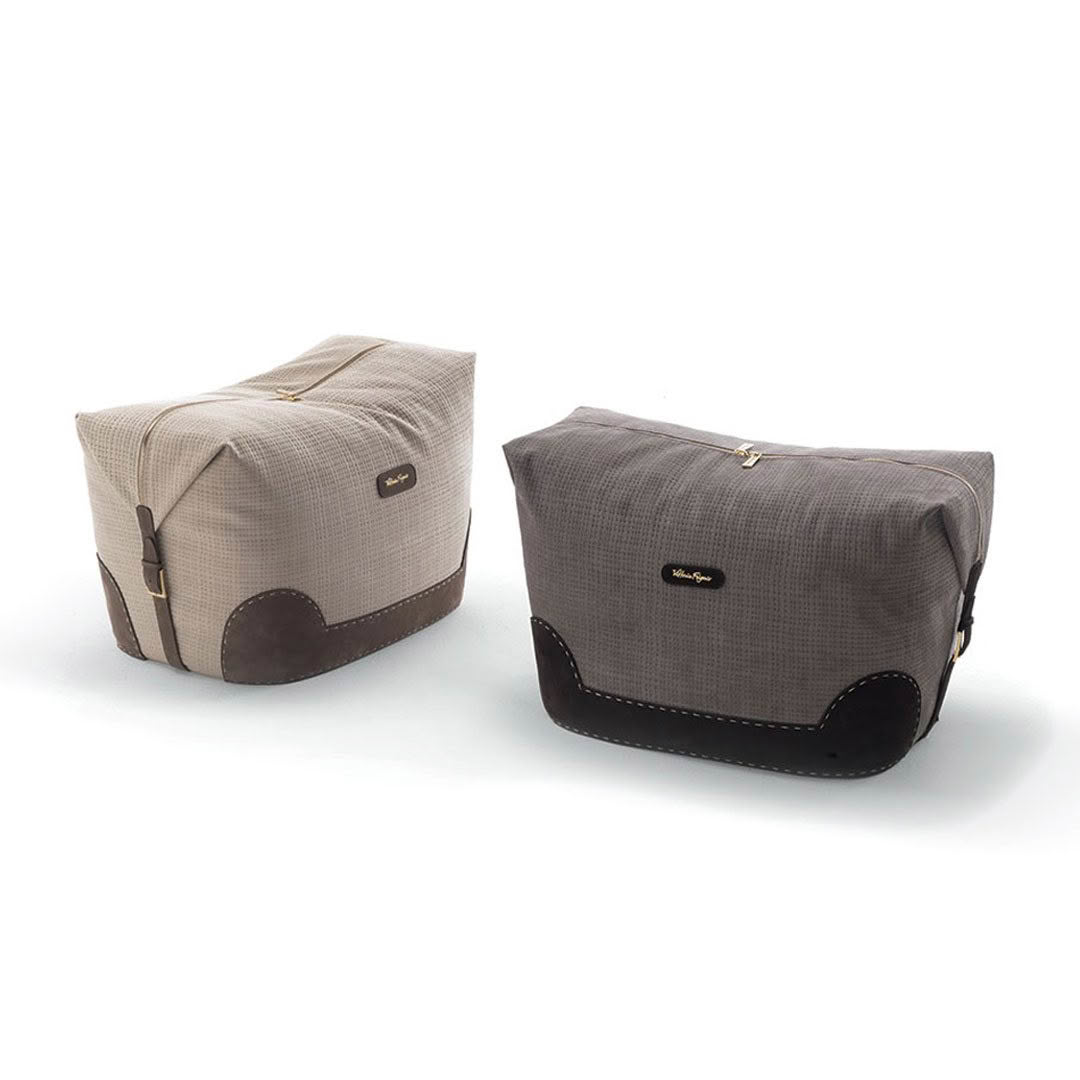 Known shapes that recall those of bags in a game of proportions and finishes, for a decorative and functional object: the Bardi pouf. The reference to fashion is immediate in the details of the belt and decorative zip; the profiles of the base are always in leather finished with stitching in contrast with the Vittoria Frigerio logo deliberately rendered as a central detail. The softness of the seat makes this pouf a pleasant furnishing game of unexpected beauty.