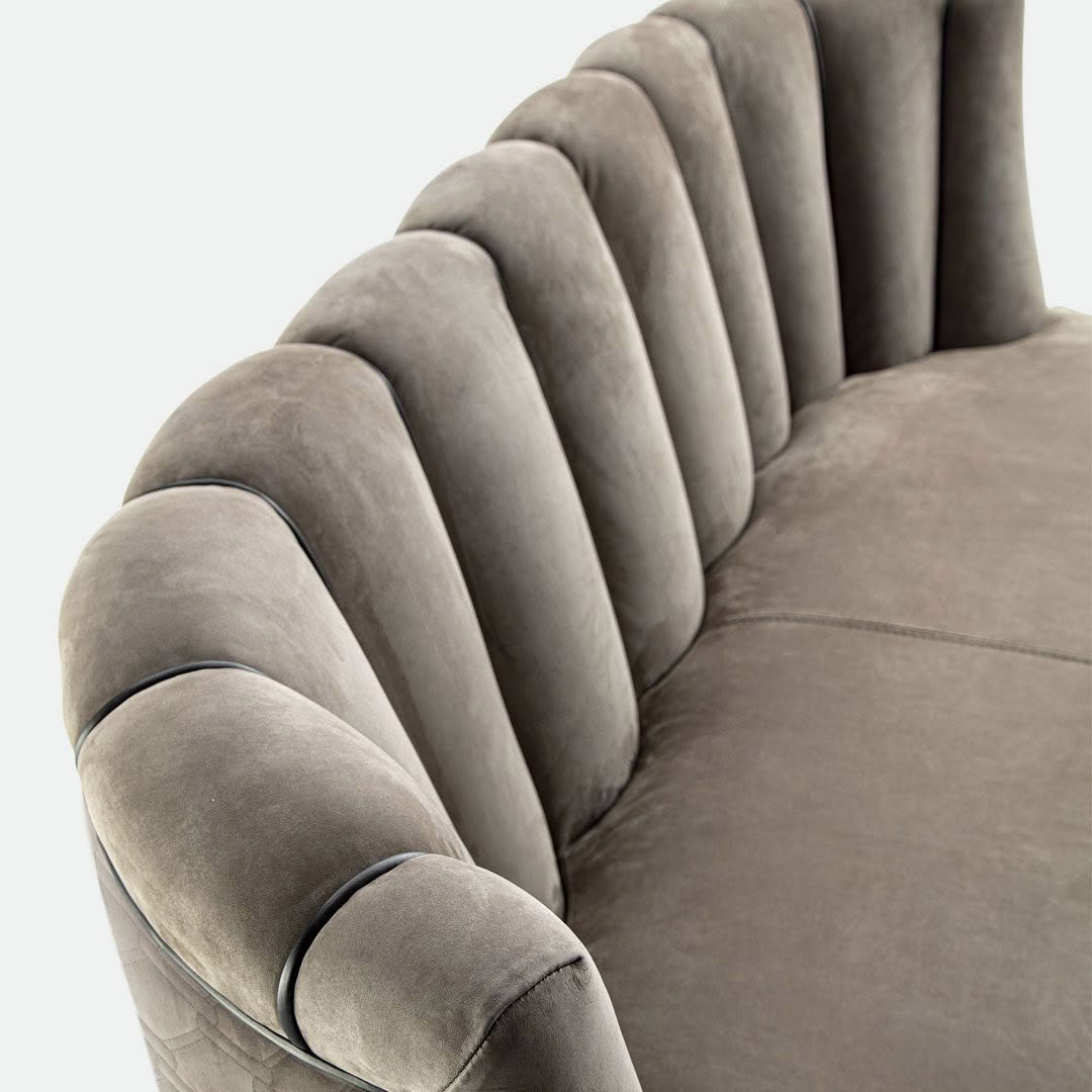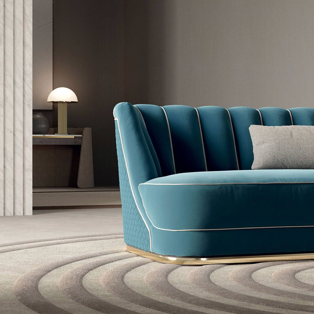 Bianca small sofa enhances Vittoria Frigerio’s ability to create unique furnishing elements with a luxurious style and generous proportions. Bianca sofa features a quilted backrest enriched internally by padded bands. A piping outlines the precious object, highlighted by the dense sartorial manufacturing. The final effect conveys softness, contrasting the sharp, defined lines of the base. Furthermore, the glossy gold or glossy bronze colour base is an extremely refined detail. A balance of rare craftsmanship for a compact and unique sofa.