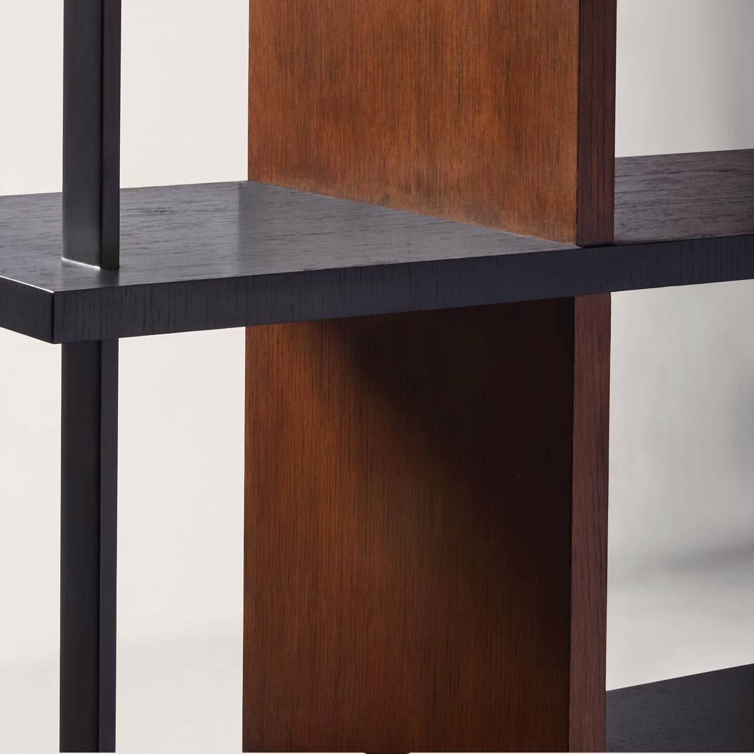 With an open-back design and six fixed shelves, this statement piece embodies the classic style of an étagère bookcase. It’s crafted from quarter-sawn oak wood and detailed with four vertical supports, which are hand-cast from stainless steel with a blackened finish.