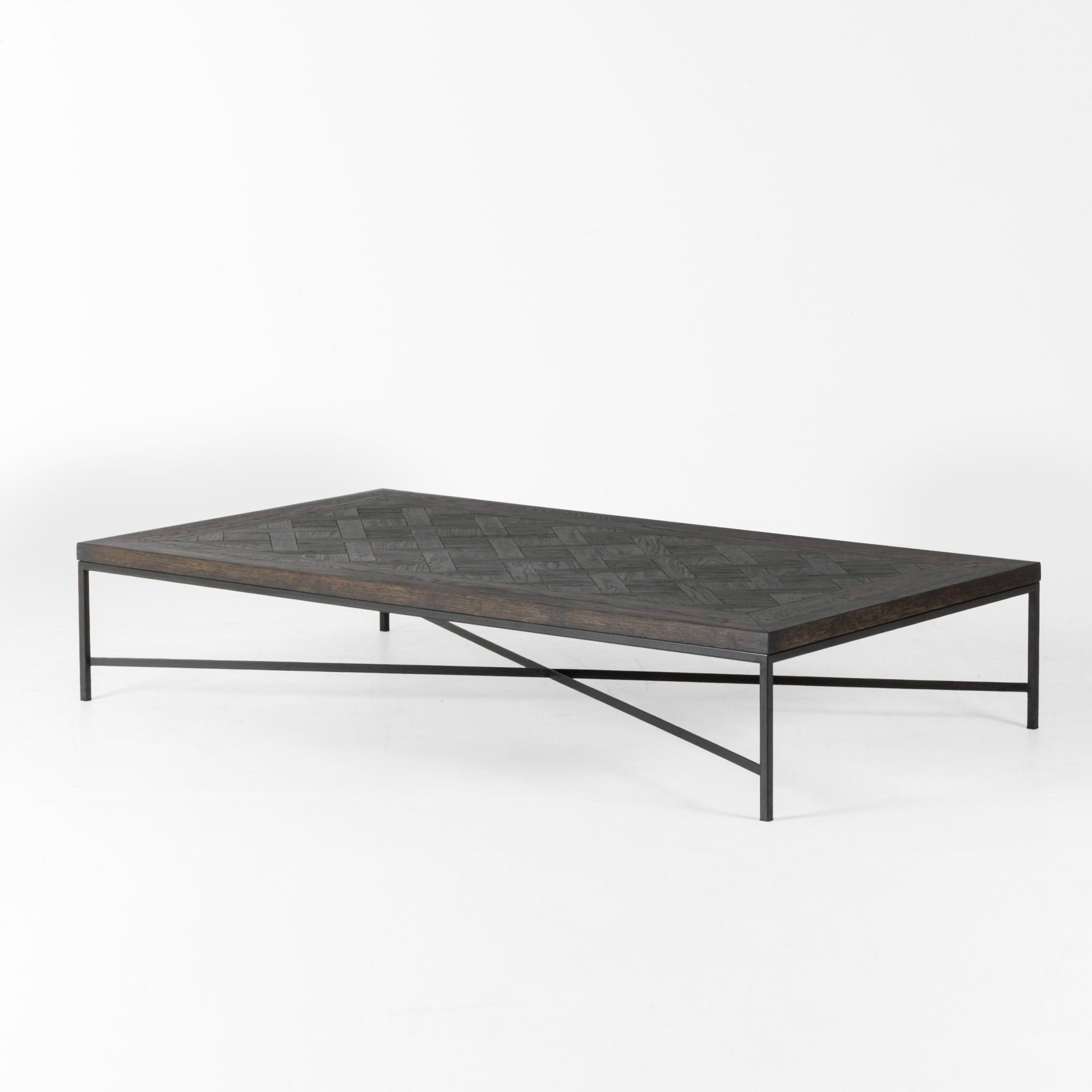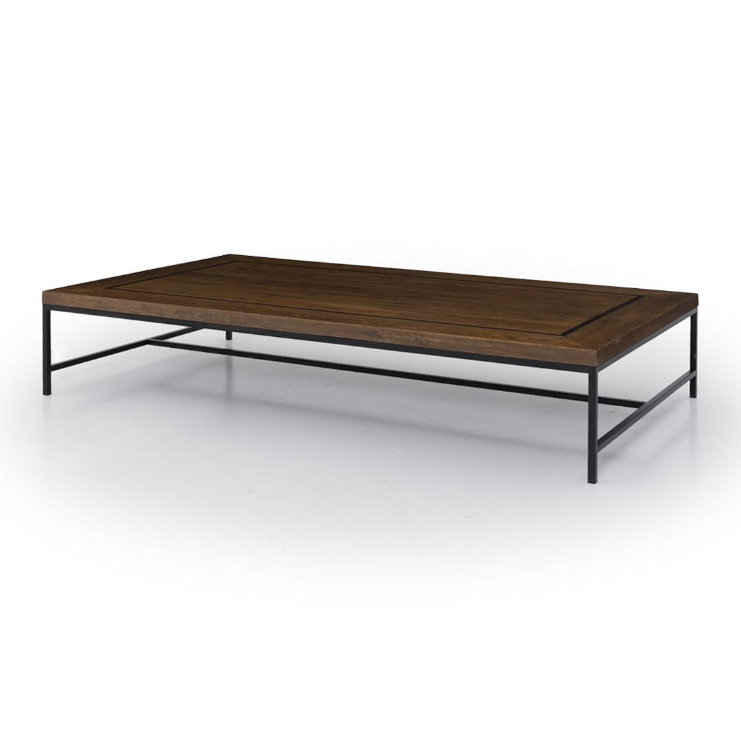 Dark wood coffee table with metal frameModern dark wood coffee table with metal frame