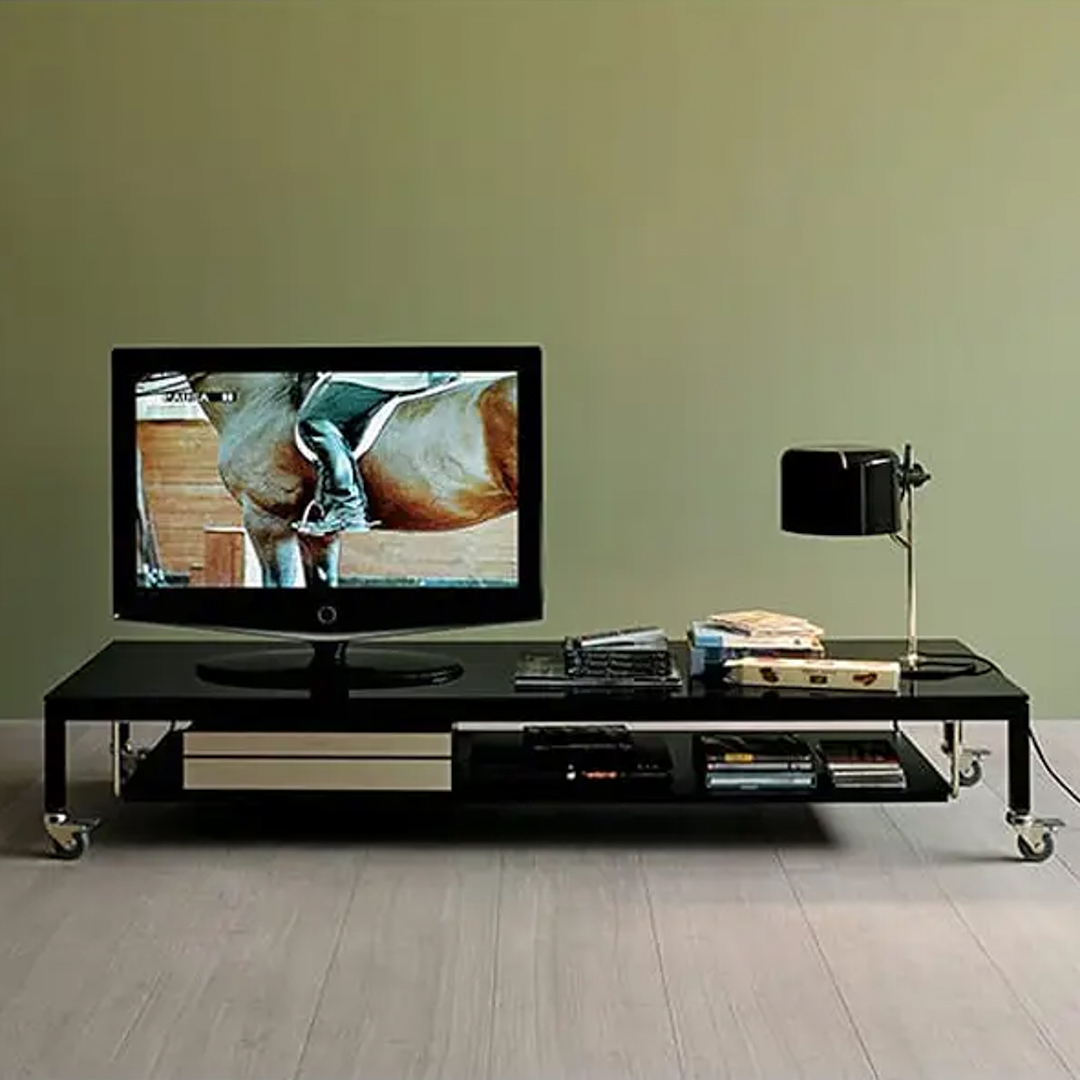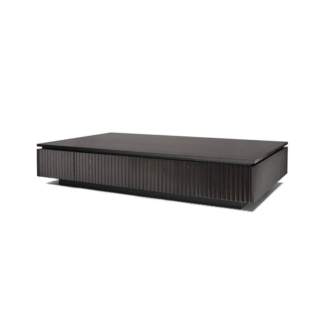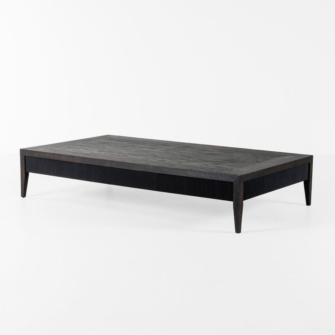 Low-profile modern black coffee tableLow-profile dark wood coffee table