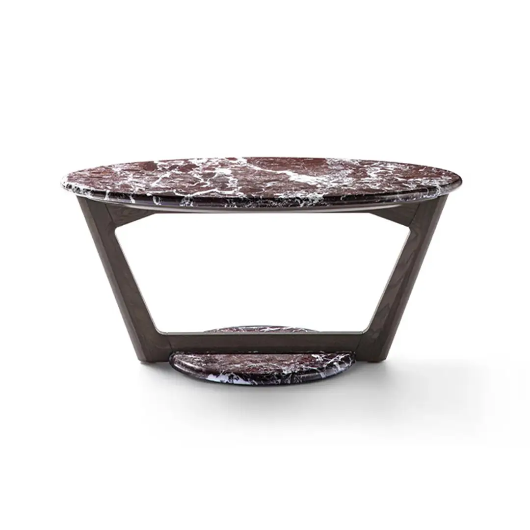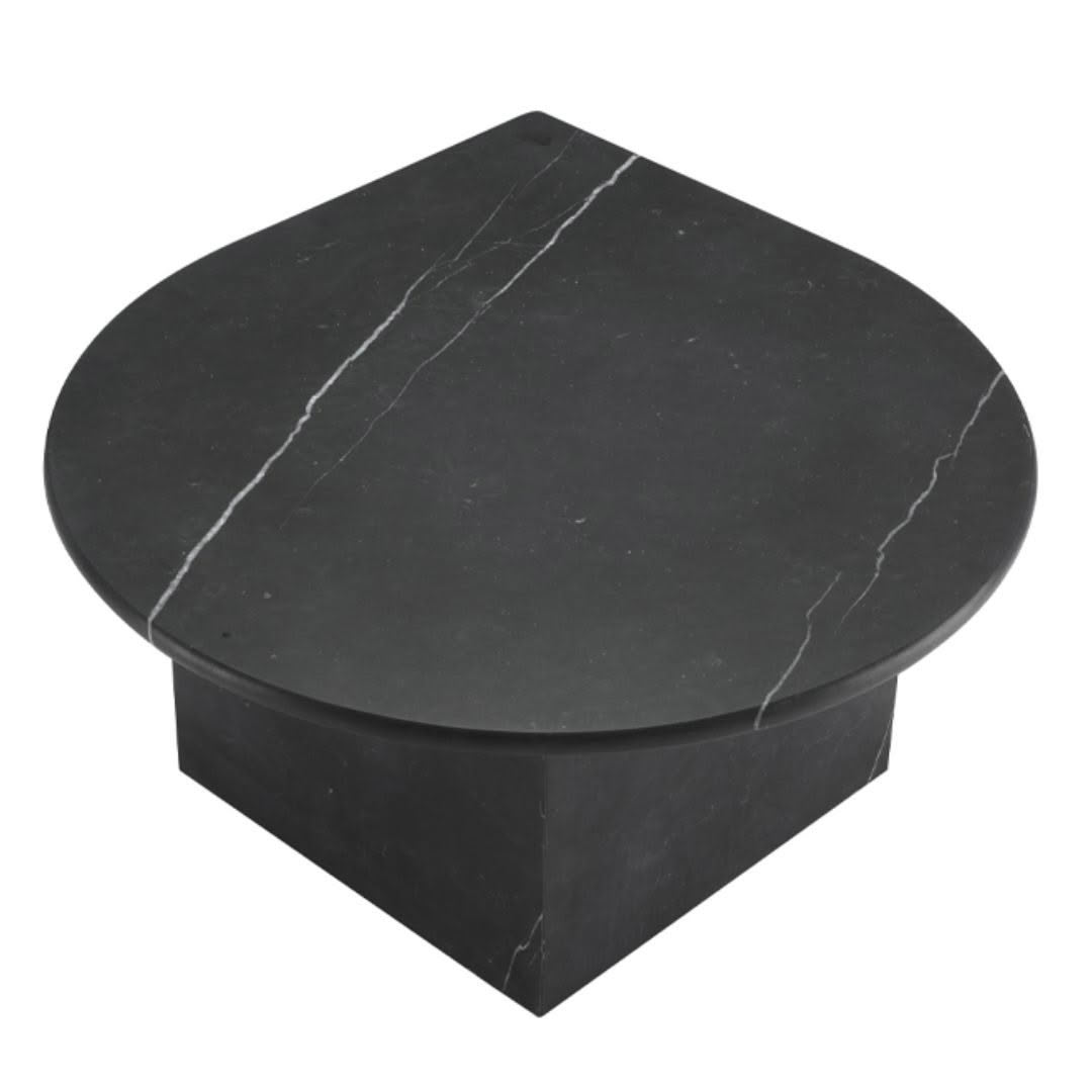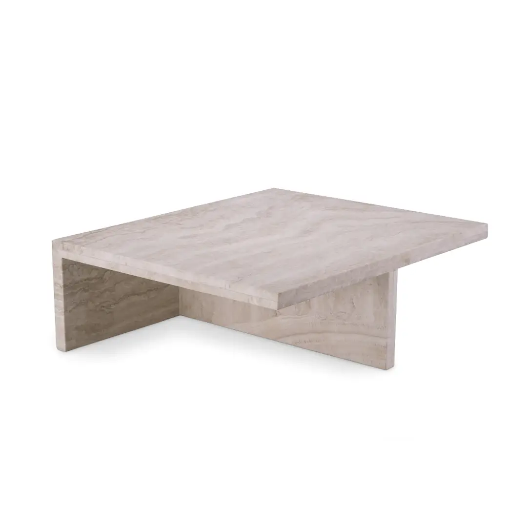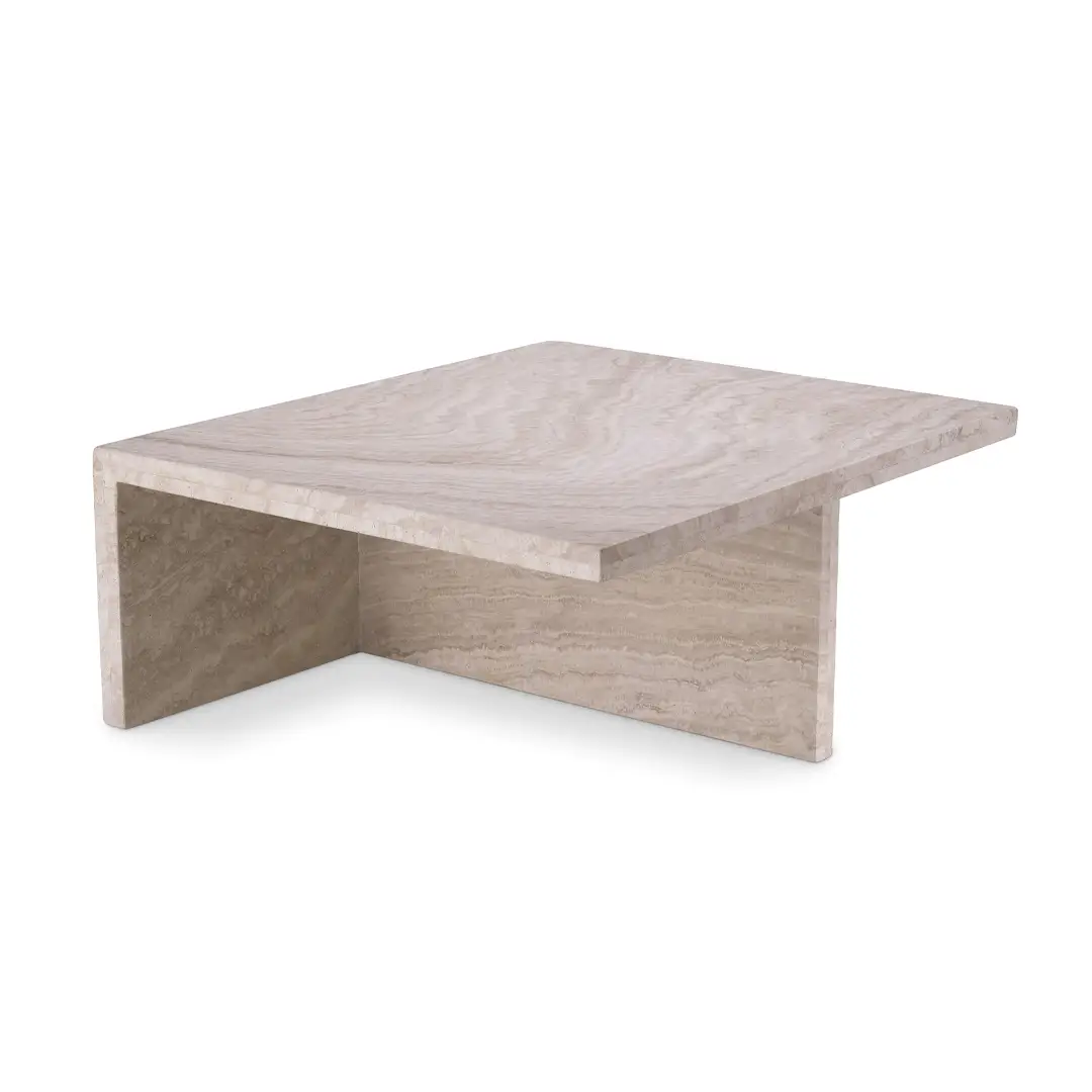Modern multi-level coffee table with stone and leatherElegant modern living room with neutral tones and decor