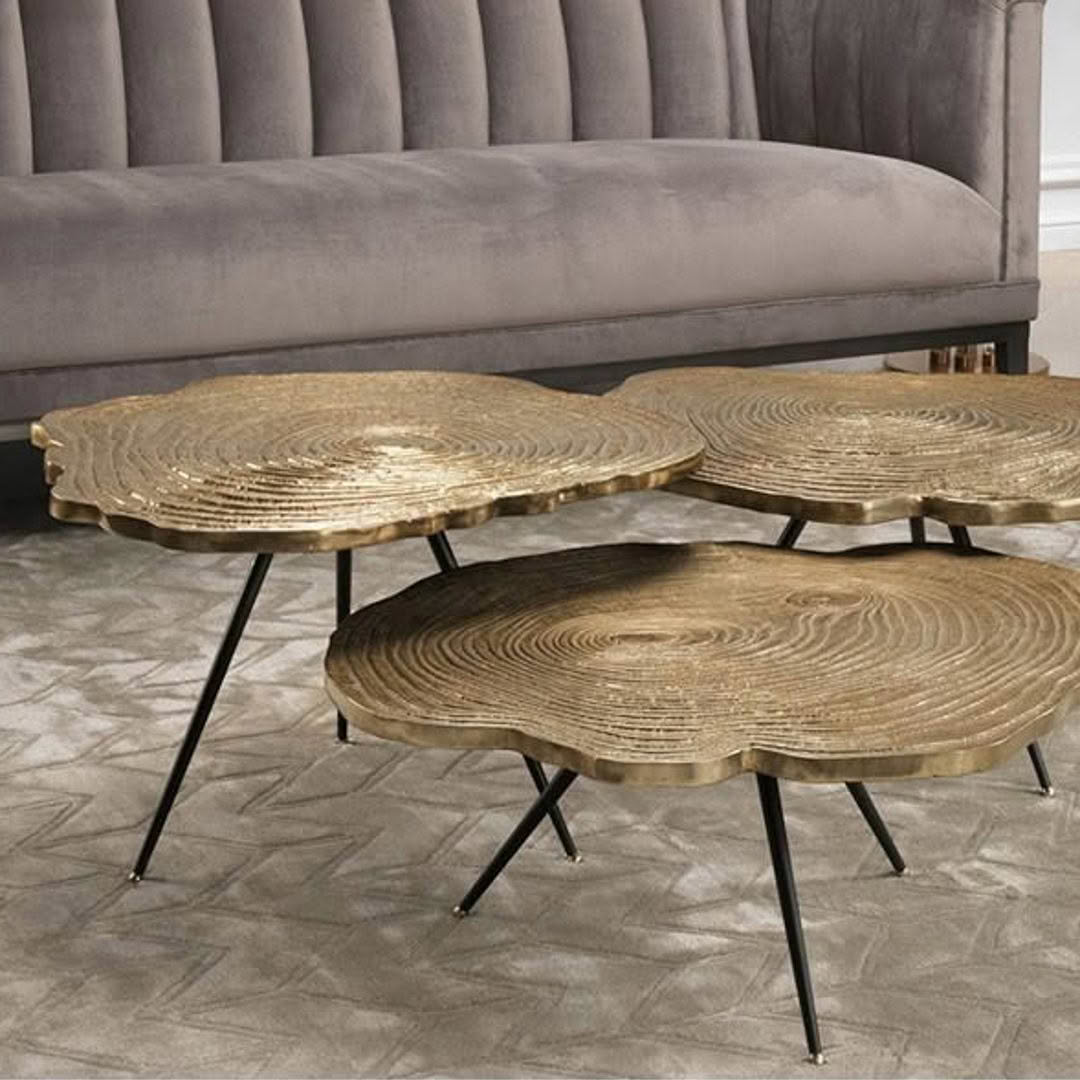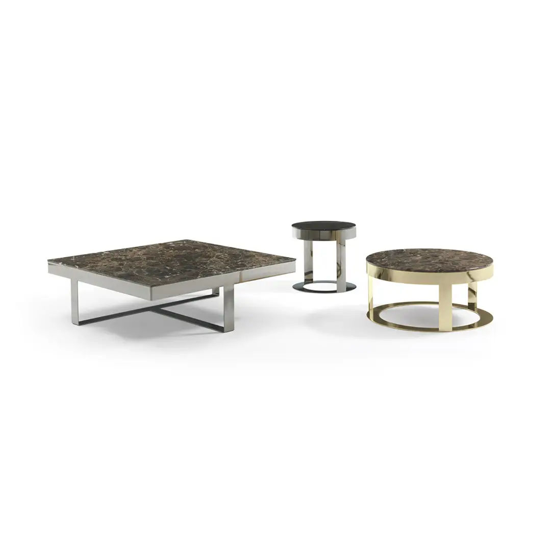 Gold-framed marble top coffee and side tablesElegant modern living room interior with stylish furniture