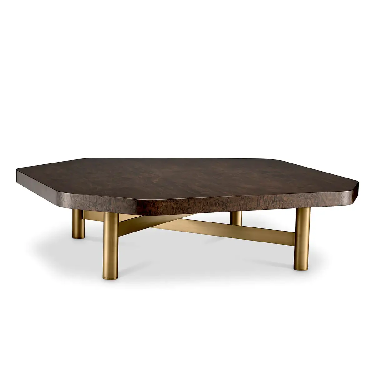 Large dark wooden coffee table on white background