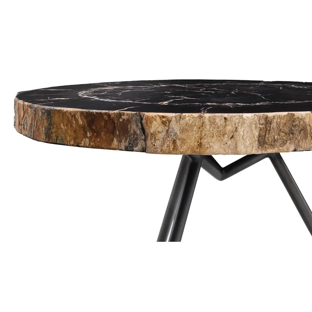 Grains, knots and holes grant a unique appearance to the Coffee Table De Soto set of 3 with petrified wood table tops. Characterised by natural brown, grey and white tones, these distinctive coffee tables are suitable for a variety of interior styles and colour schemes. The tables vary in height and feature bronze finish legs.