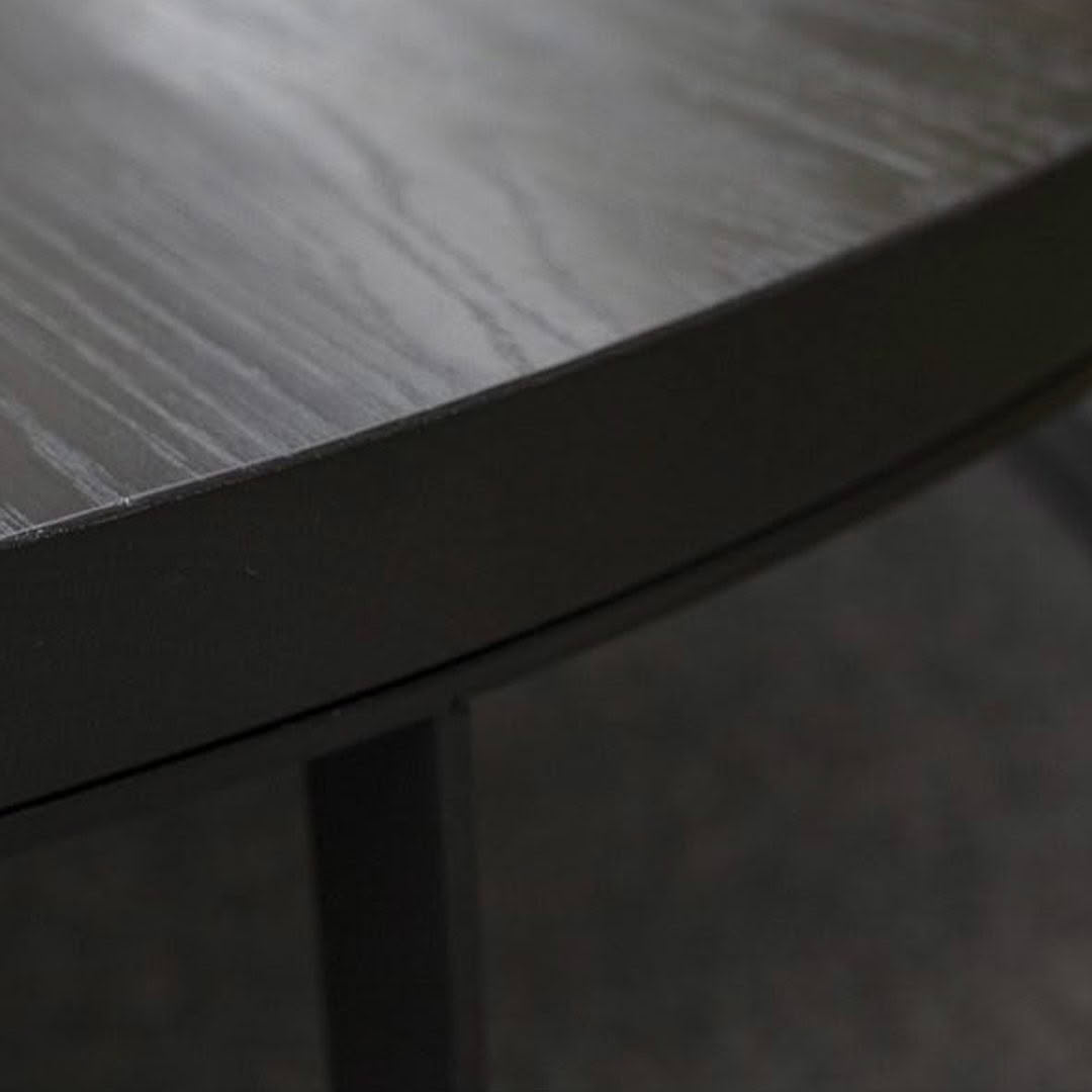 Ted coffee table with round top in solid American Oak hand planed, aged and waxed. Blue Gun Steel or Powercoated Steel base. TAILOR MADE TO ORDER IN NEW ZEALAND BY TRENZSEATER