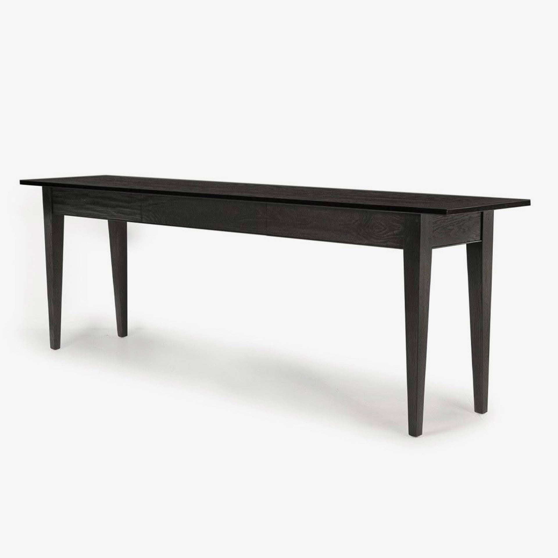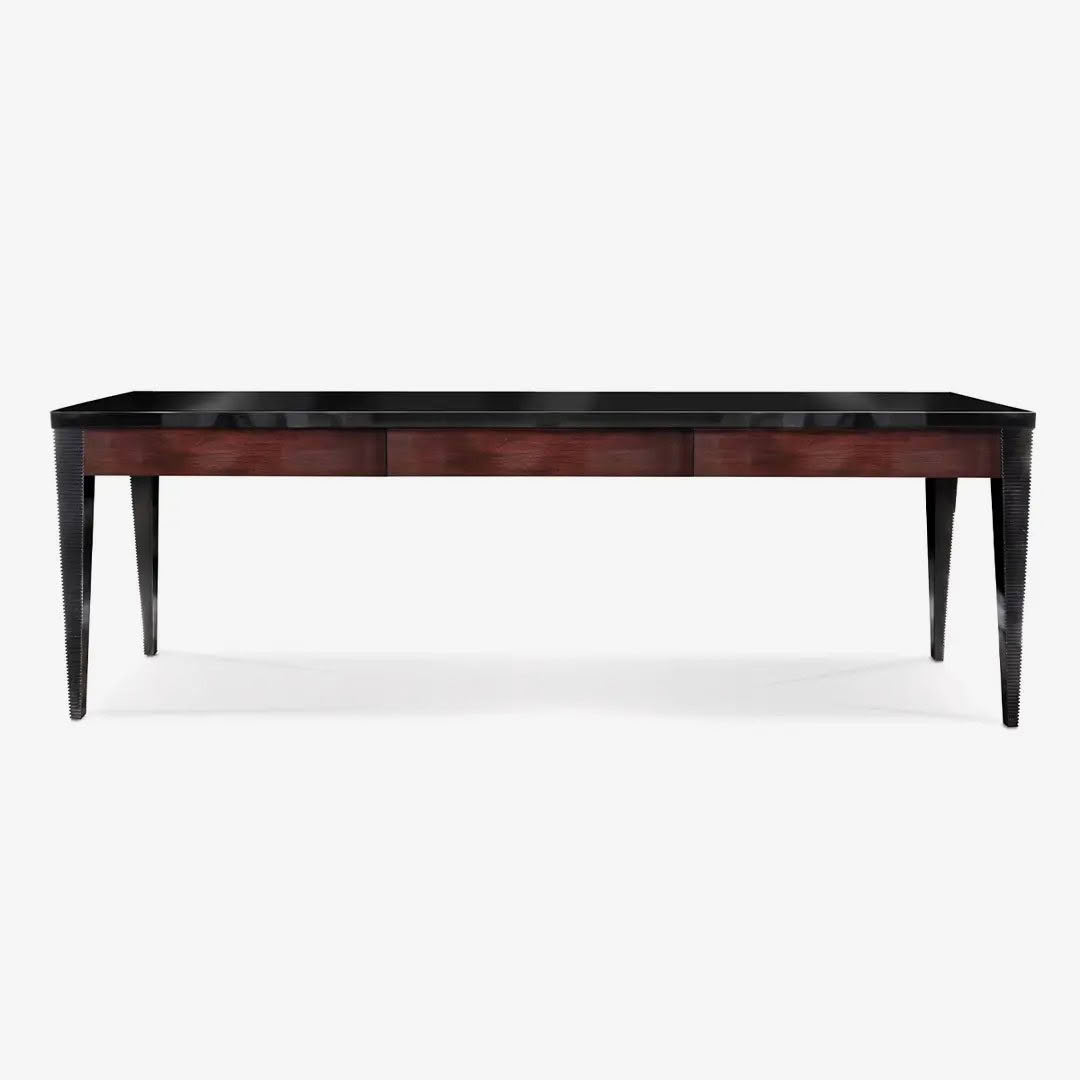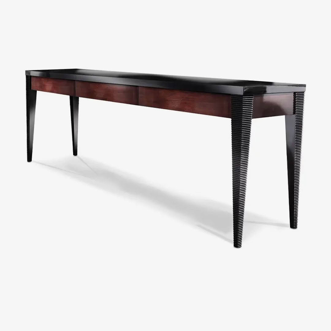 Black modern dining table with ribbed detailModern black console table with tapered legs