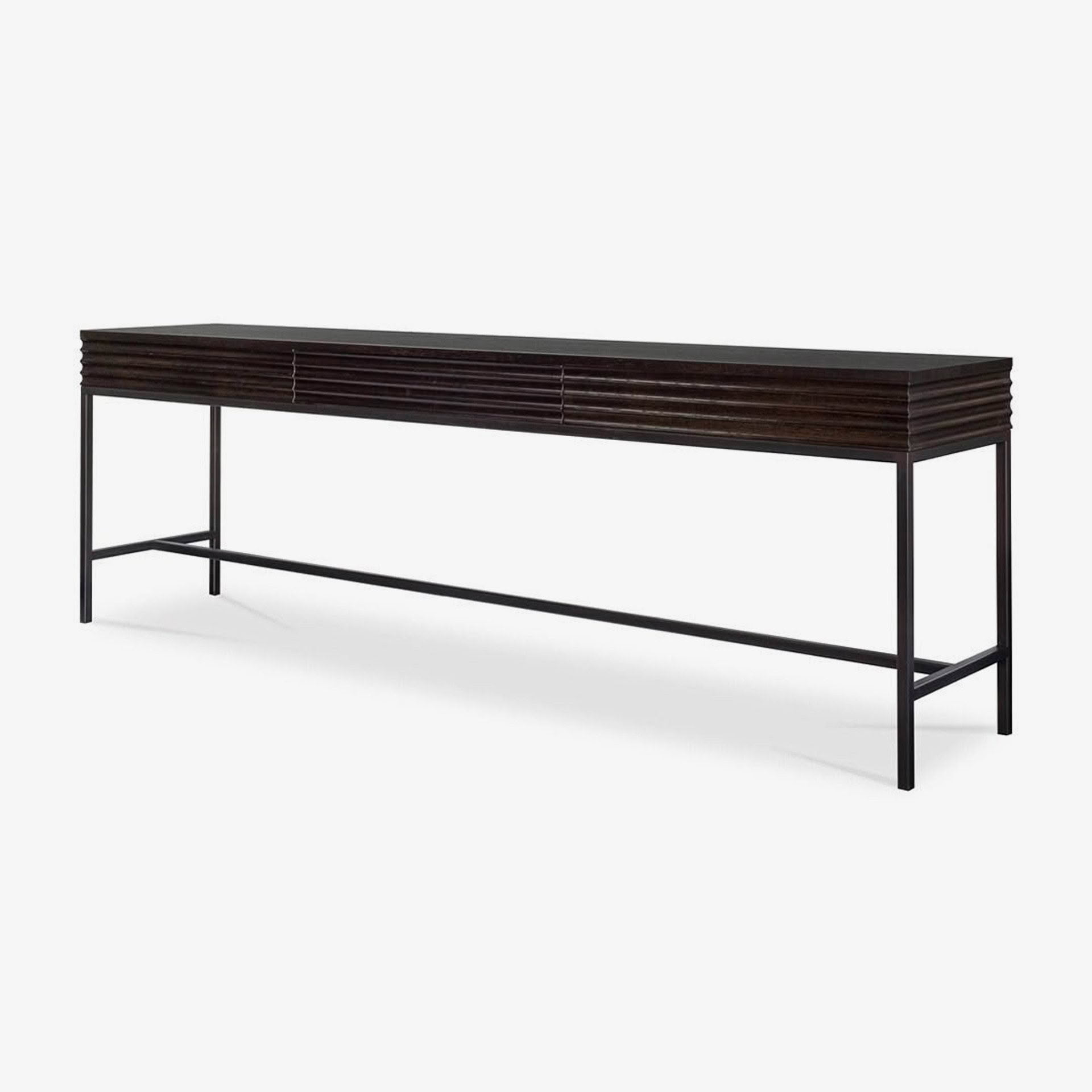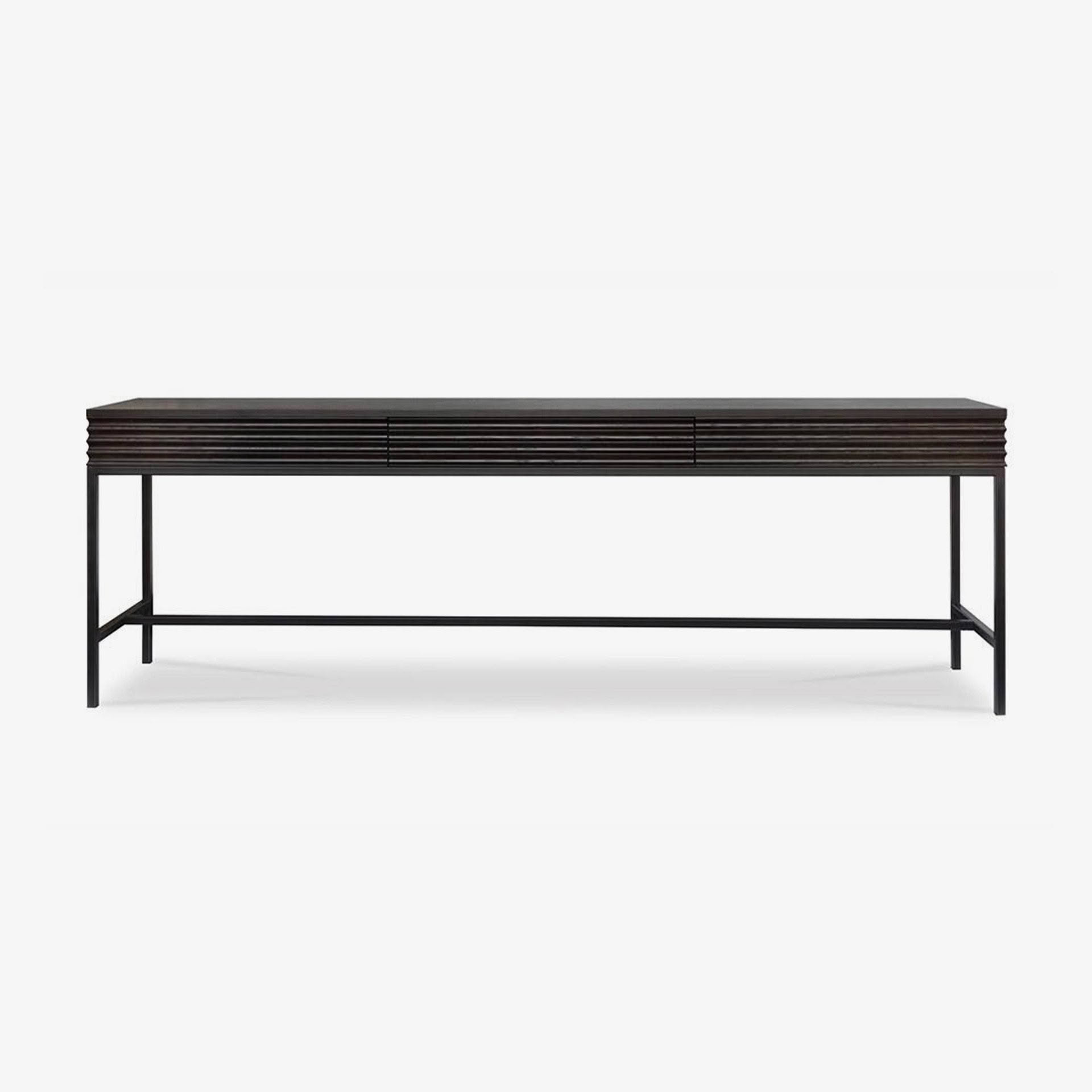 Modern black metal desk with ribbed tabletopModern black metal console table