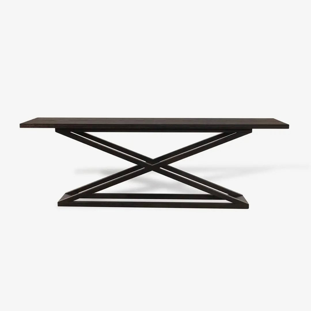 Dark wood table with crisscross metal base