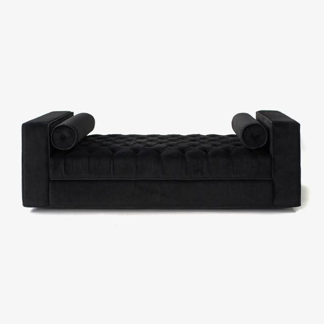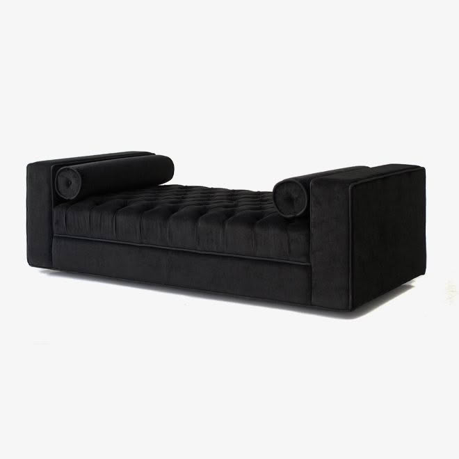 Modern leather daybed with gray cushion and bolsterModern leather daybed with cylindrical bolster pillow