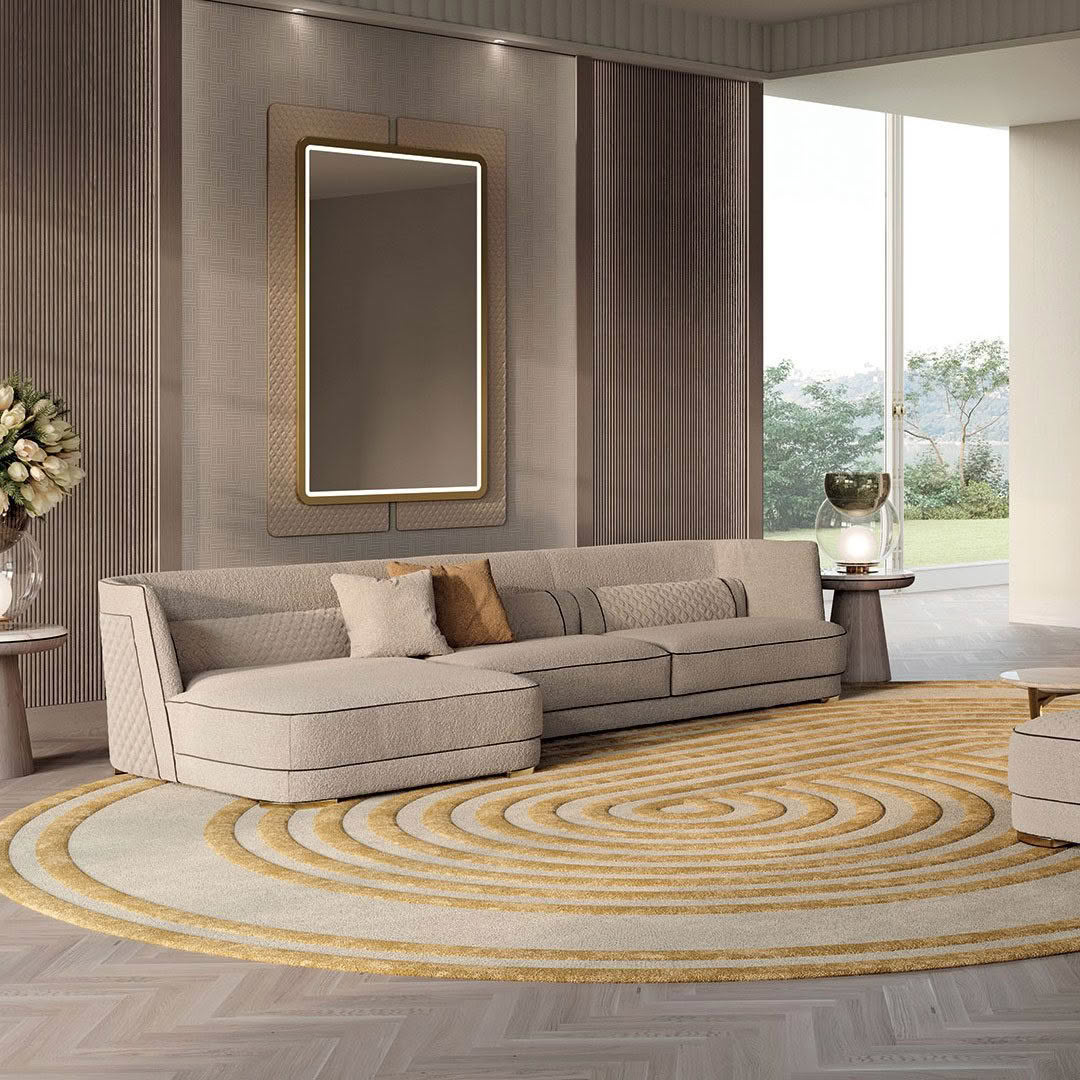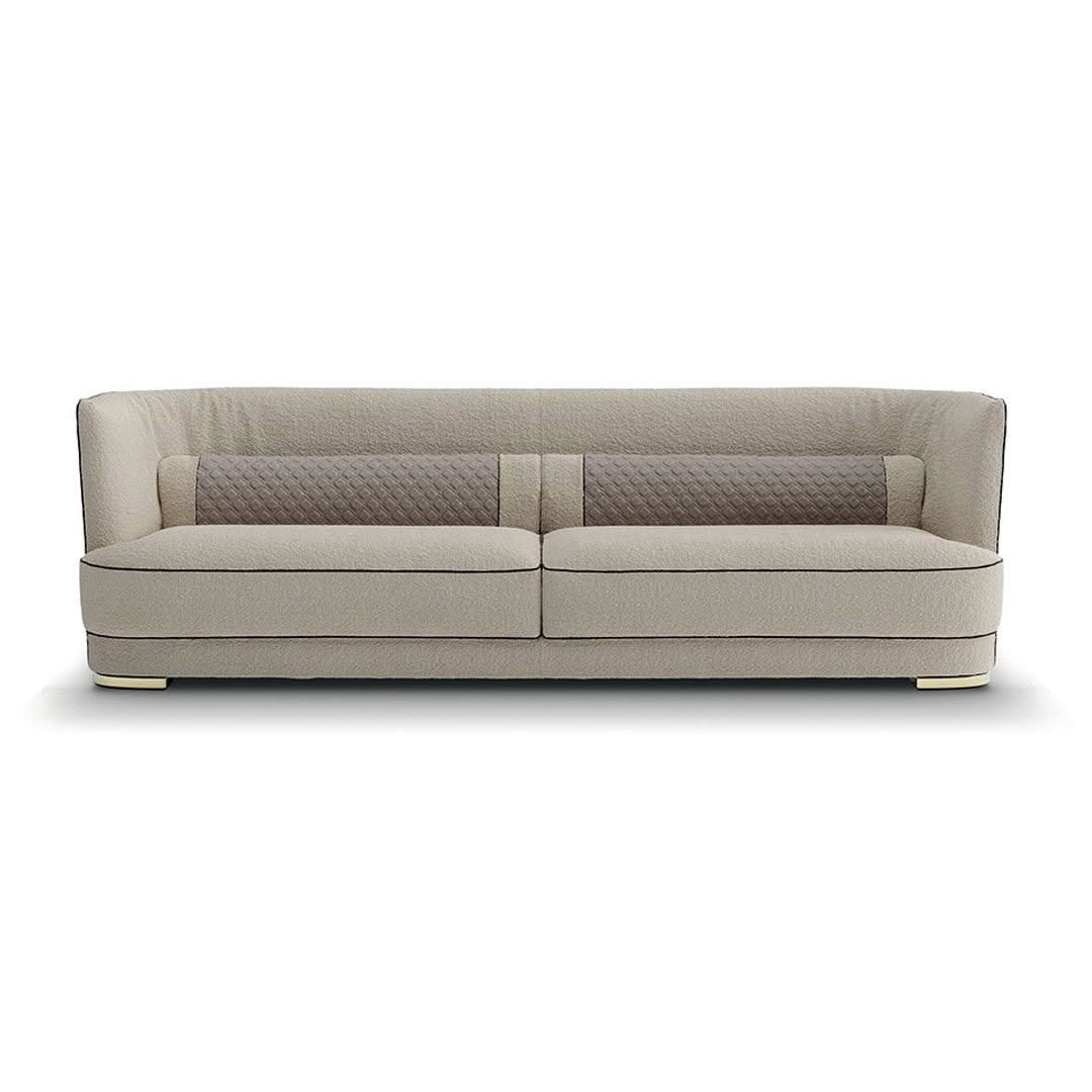 The classic proportions are highlighted by the important seat cushion, the luxurious declination can be read in the details of the quilted inserts on the outside of the backrest and on the integrated lumbar cushions. The innovative touch is present in the constructive logic of the elements of the sofa, which is available in two backrest heights, Low at 74cm and High at 88cm, which develops into closed two or three-seater sofas, terminal, central, comfort, dormeuse and chaise elements. longue. The backrest, which integrates perfectly into the armrest without interruption in height, creates an enveloping effect. The Greppi sofa is a timeless object, yet extremely current in its proportions and materials.