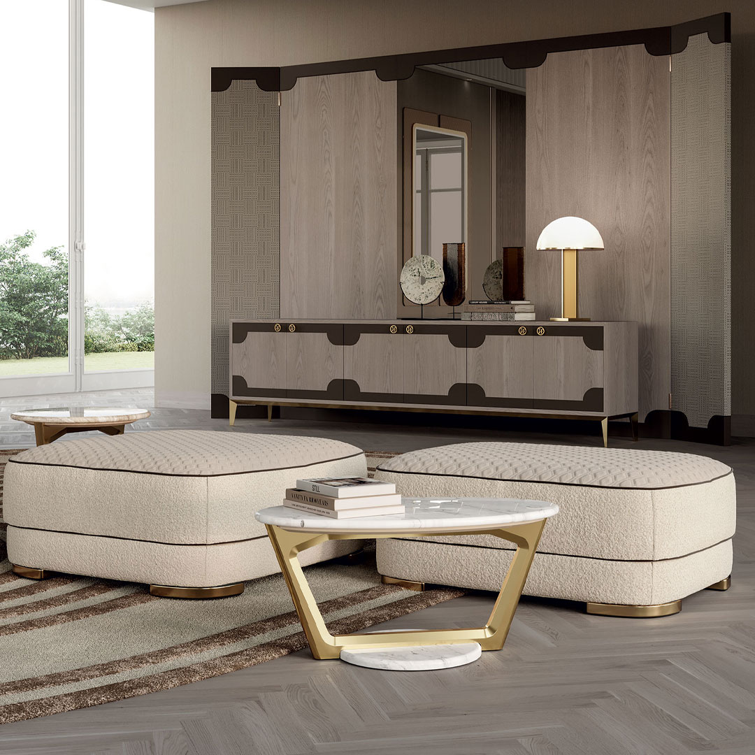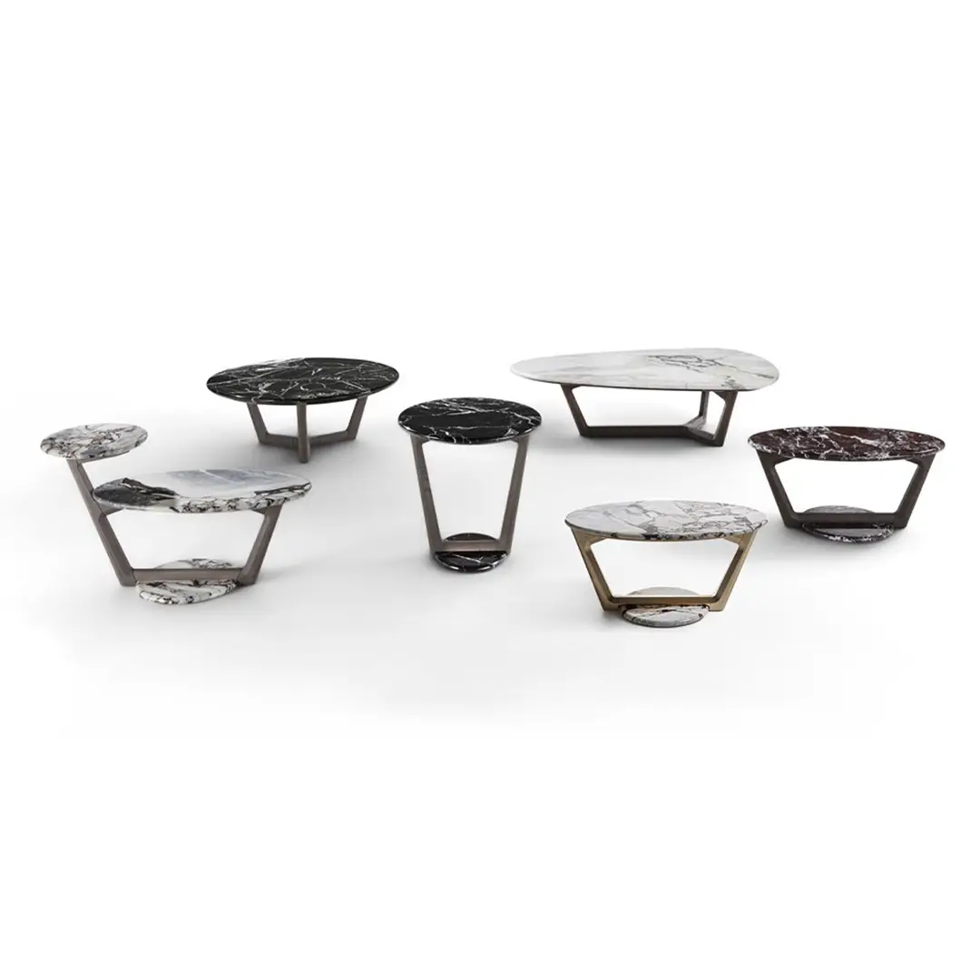 Essential geometries in precious materials for the Savini small tables collection featuring a trapezoidal base surmounted by a top in refined finishes. Savini coffee tables furnish every room with refinement and harmony for charming setting where the contrast of materials and the balance of shapes become the featuring character.