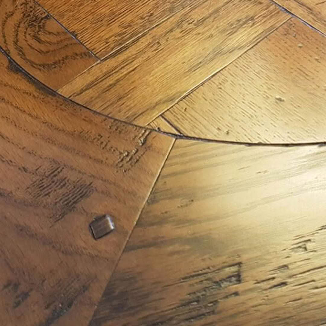 Stunning round parquet top made from French Oak with tree nailing details. Hand made in New Zealand.