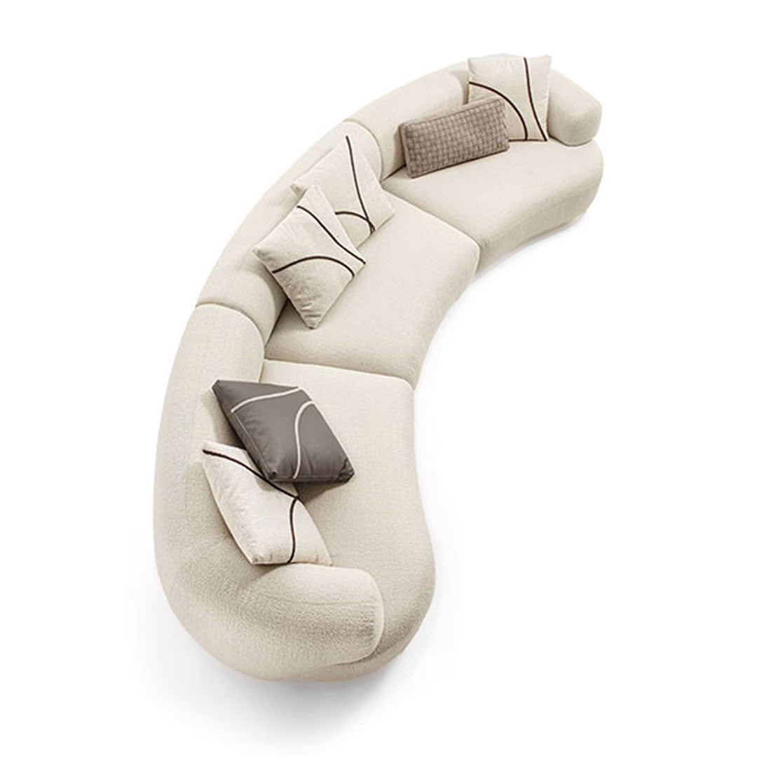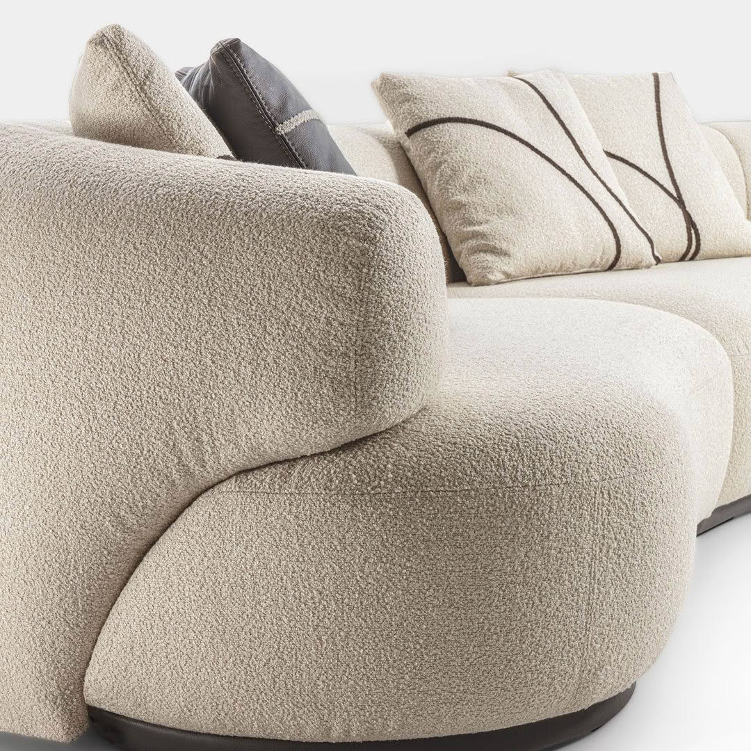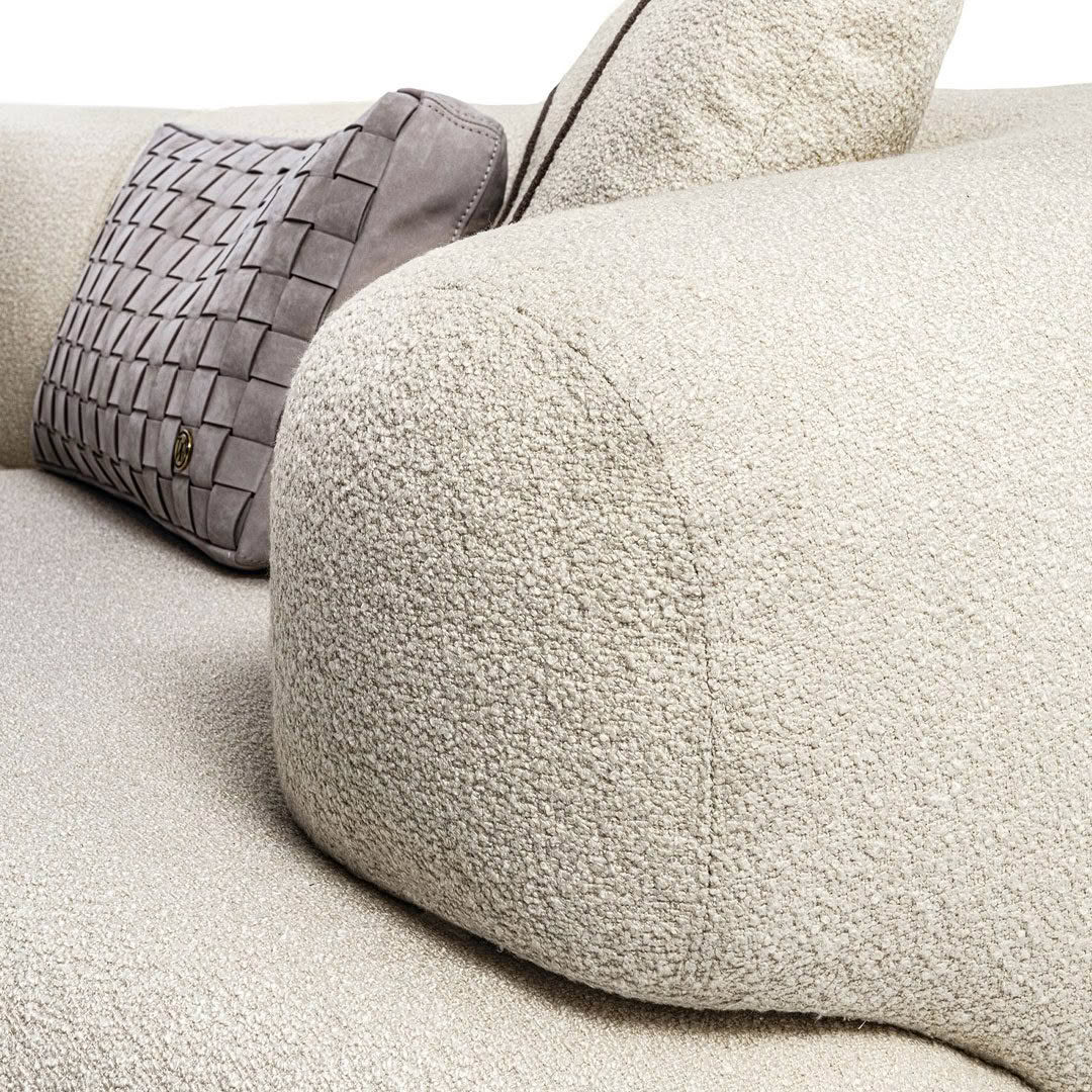 The new Monaco sofa, design by Luca Erba, stands out for its unconventional shapes, its soft curved elements and the detail of the overlapping armrest pleasantly resting on the one-piece seat cushion. The architect’s signature aim is to find the deep essence of each material, for a soft and sensual reinterpretation of silhouettes inspired by nature. Far beyond the classic round seat element, the modular Monaco sofa features unexpected elements for new design solutions and fully customizable spaces, thus allowing the creation of both classic, linear solutions and more sophisticated settings. The collection is completed by an armchair.